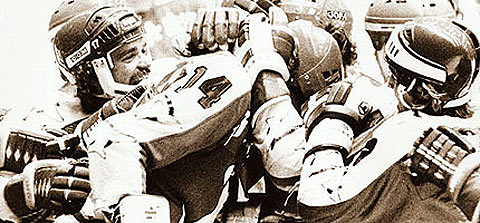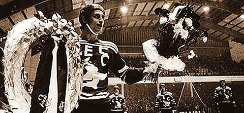 Gratuliert werden durfte dann zwei Tage später in Bad Nauheim. Als das Haie-Team um halb sieben Uhr aufs Eis kam, hatte in der Kabine schon der Sekt geschäumt. Denn, im Nachmittagsspiel in Berlin hatte Krefeld durch ein 4:6 die letzten theoretischen Chancen eingebüt – Boss Erlemann durfte, ganz in seinem Element als PR-Mann in eigener Sache, für die Reporter zu Recht von „einer historischen Stunde für das Kölner Eishockey“ sprechen. Es folgte eine strapaziöse Woche mit Glückwünschen am laufenden Band. Originell: Fortuna Kölns Boss Jean Löring lie einen Sack mit 263 Pucks überreichen – genauso viele Treffer hatten die Haie bis zum letzten Heimspiel erzielt. Die Meisterschale hielt Kapitän Detlef Langemann dann am 20. März in der Rheinlandhalle in Krefeld in den Händen, und erneut gab’s ein Husarenstück: durch vier Treffer im Schlussabschnitt und einen 6:4-Sieg über den KEV bescherte der KEC der Titelparty in der Deutzer Sporthalle Jubel, Trubel, Heiterkeit.