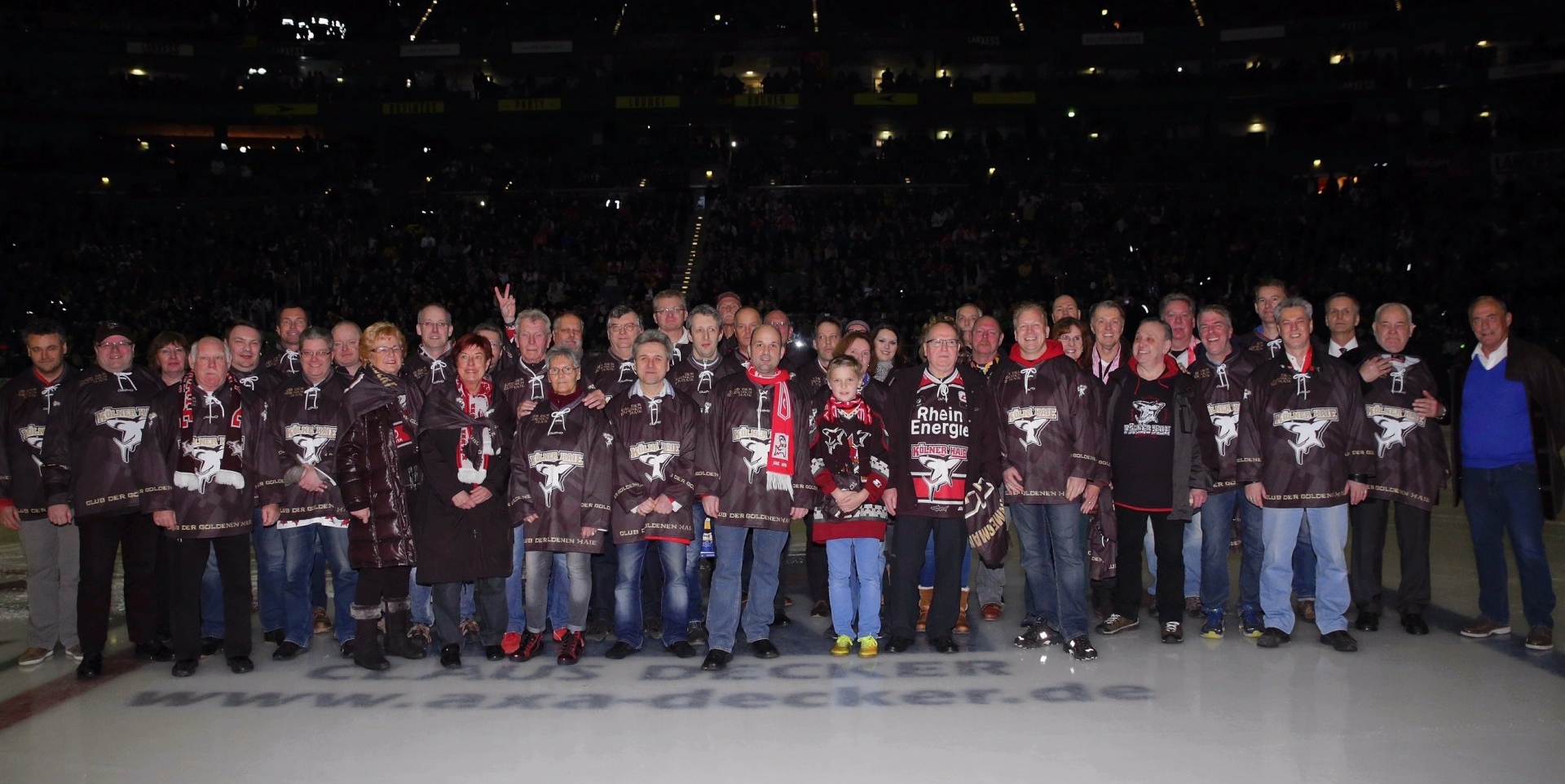 Eine feierliche Ehrung auf dem Eis der LANXESS arena, ausgestattet mit einem goldenen Trikot und einer goldenen Dauerkarte – auf diese Weise wollen wir DANKE sagen für großartige Treue und Loyalität. Die „ältesten“ Goldenen Haie sind seit über 40 Jahren im Besitz einer Dauerkarte – unglaublich!