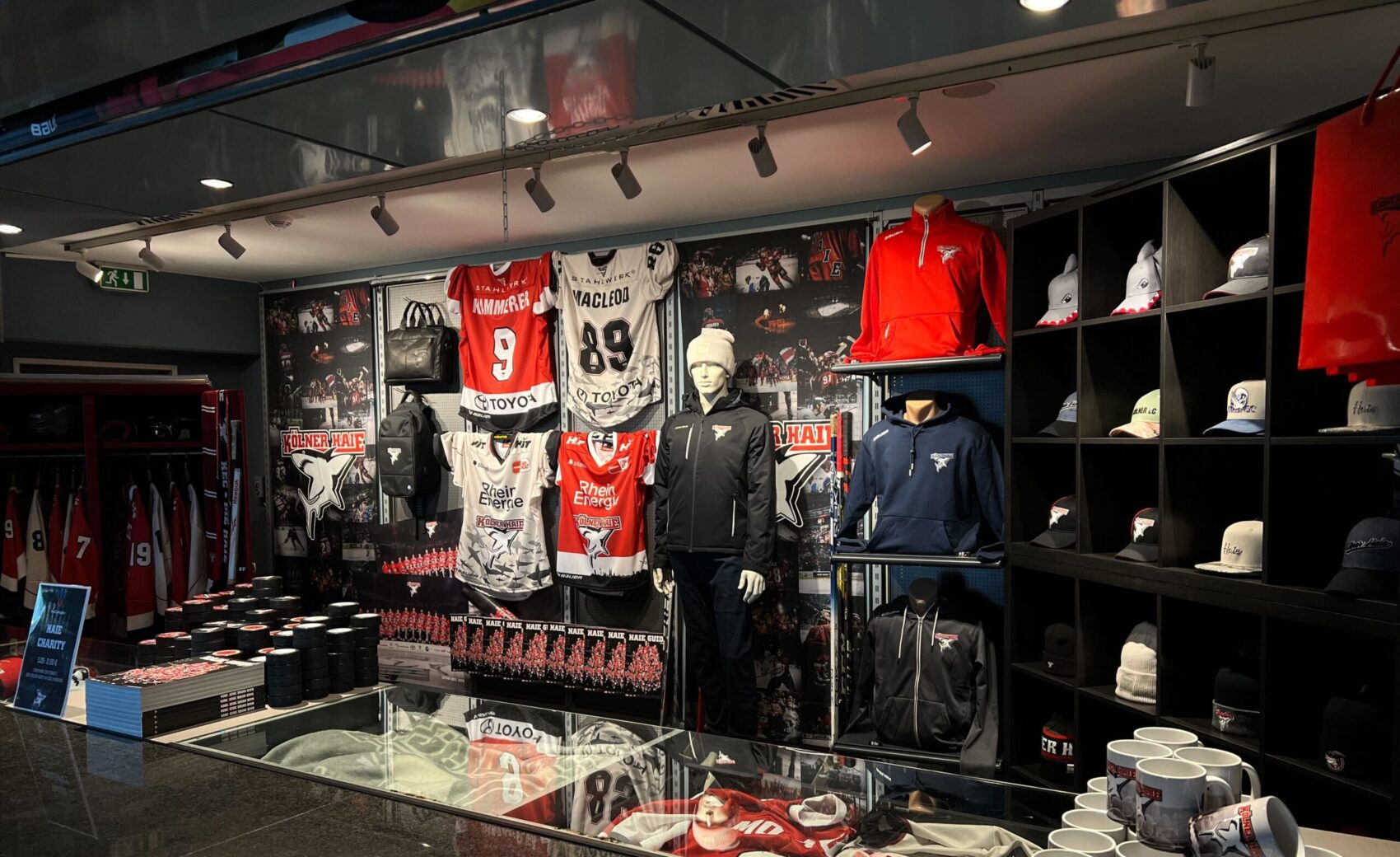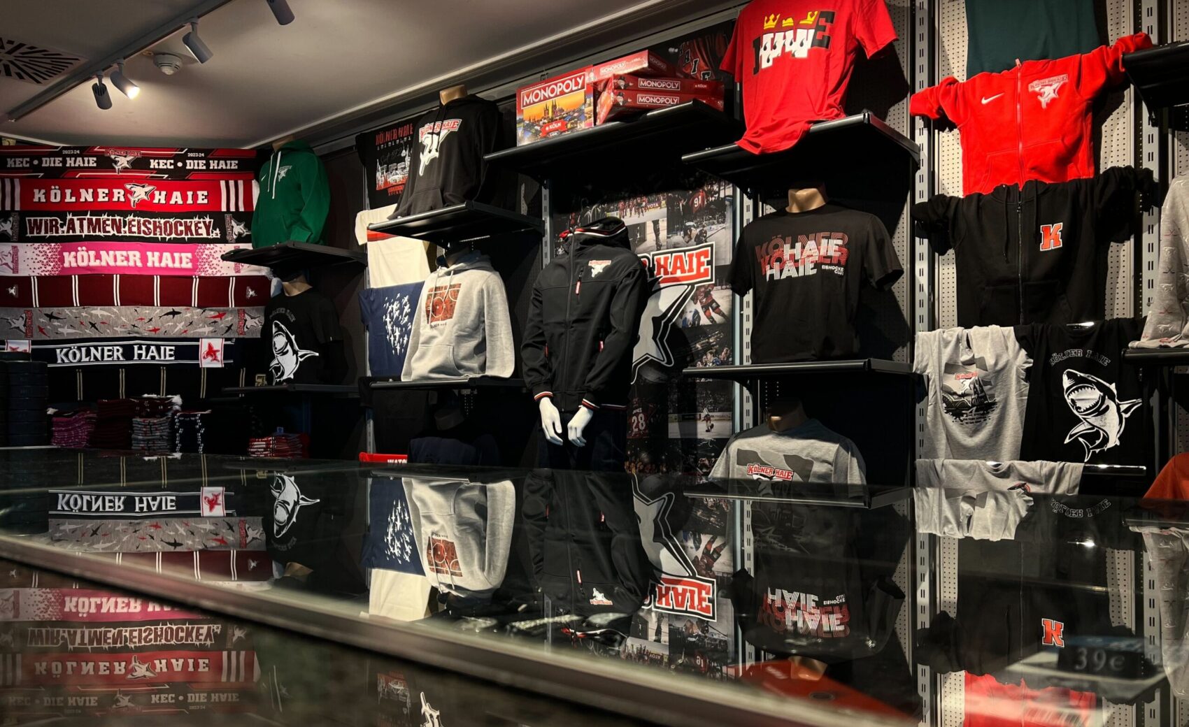 Der GAMEDAYstore ist die Anlaufstelle für Haie-Fanartikel in der LANXESS arena. Der Store befindet sich im Norden des Arena-Umlaufs – bei Block 201, direkt neben dem Info Counter Nord. Zusätzlich zum festen GAMEDAYstore gibt es einen weiteren, mobilen Stand im Süden des Arena-Umlaufs. Die Stores öffnen mit Arena-Öffnung ab 90 Minuten vor Spielbeginn.