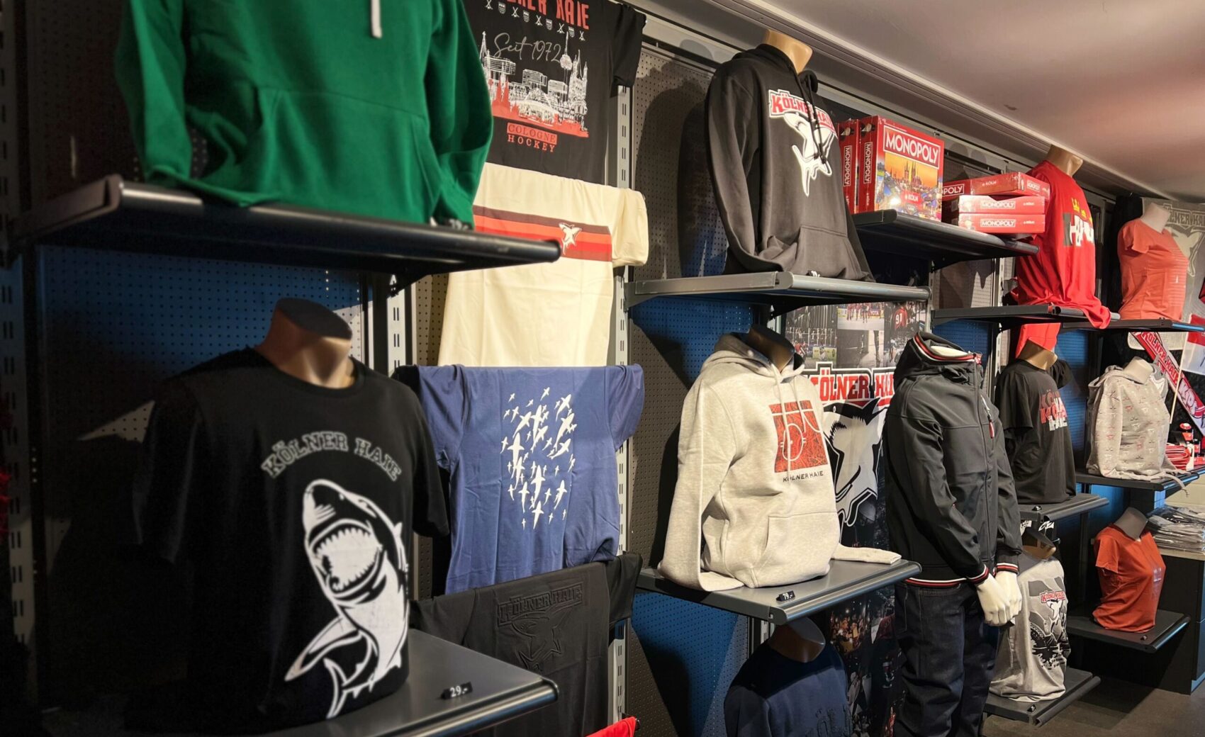 Am GAMEDAYstore im Norden findest du sowohl eine Auswahl an aktuellen Haie-Trikots der Saison, als auch eine Auswahl an Fan-Artikeln der aktuellen Saison (wie Textilien, Aufkleber, Pins, Schals etc.). Ebenfalls an den GAMEDAYstores sind die Lose der Haie-Charity erhältlich.