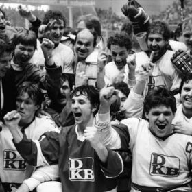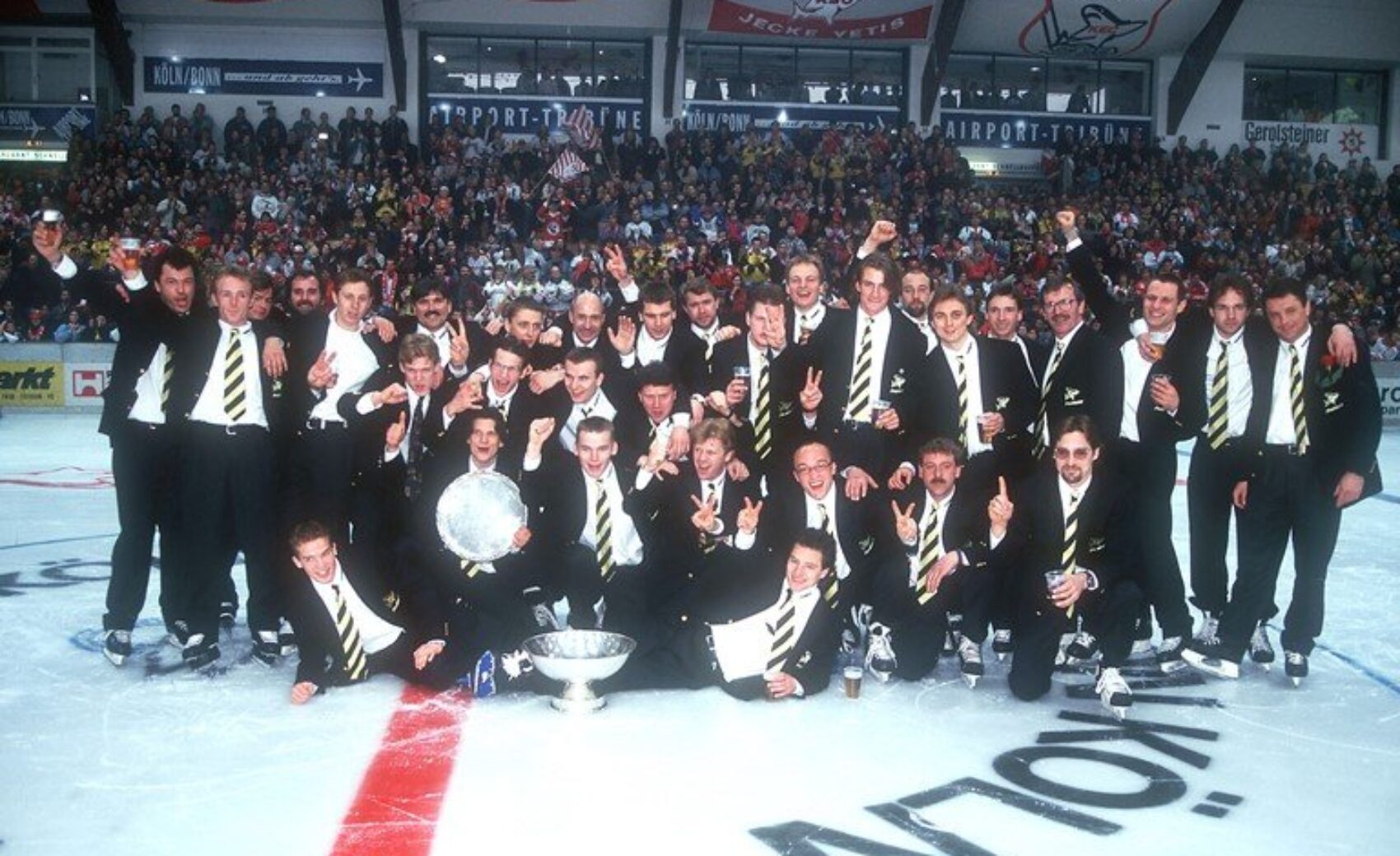 Keiner, der bei diesem vierten Play Off-Spiel zwischen KEC und DEG live in der Kölnarena dabei war, es im Fernsehen verfolgte oder der Radioreportage lauschte, sollte diese Partie so schnell vergessen. Die Superlative bei der Beschreibung dieses Eishockeyspiels fanden bei den Fans kaum ein Ende. Spiel 4 der Halbfinalserie zwischen Köln und Düsseldorf war denkwürdig. Am Ende siegte der KEC vor 18.698 begeisterten Fans mit 5:4 nach Verlängerung. Dabei hatte alles nach einem frühzeitigen Saisonende ausgesehen. Lange führte Düsseldorf in der Kölnarena mit 4:3. Die Spannung stieg von Minute zu Minute, die DEG rückte dem Finale immer näher, die Haie steuerten dem Aus entgegen. Als die letzte Minute angebrochen war, schien das Ende des KEC besiegelt, doch dann kam Bill Lindsay: Der Nordamerikaner traf 56 Sekunden vor der Sirene zum 4:4. In der Verlängerung war das Spiel an Dramatik dann nicht mehr zu überbieten. Zunächst versiebten beide Mannschaften Überzahl-Chancen, dann scheiterte Jan Alinc mit einem Penalty an Torwart Trefilov, ehe nach 10 Minuten und 38 Sekunden in der Overtime erneut Lindsay für den Kölner Siegtreffer sorgte. Jubel, Tränen, Gänsehaut – dieses Spiel hatte alles, was Fans an Eishockey so lieben. Es kam zu Spiel 5 in Düsseldorf: