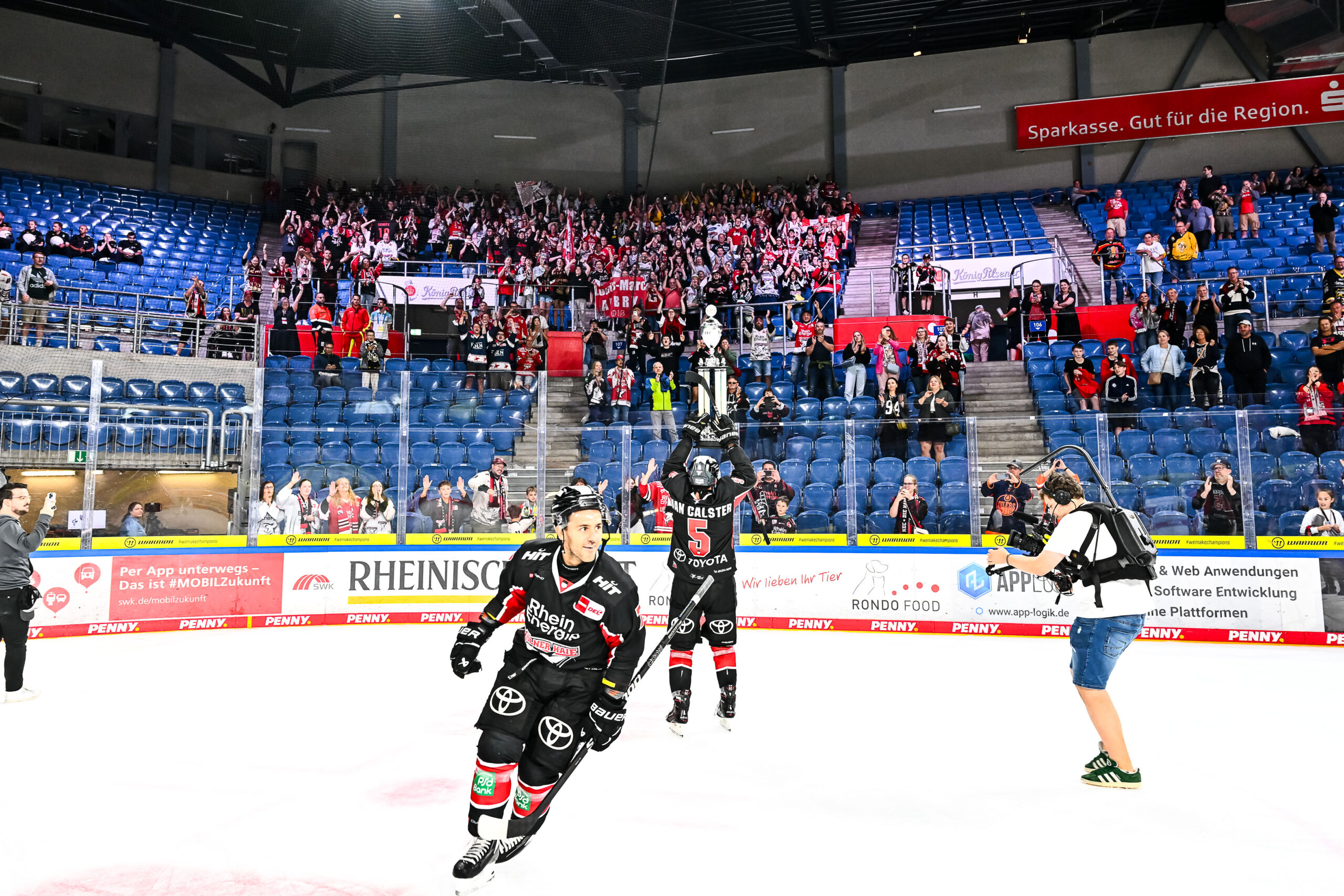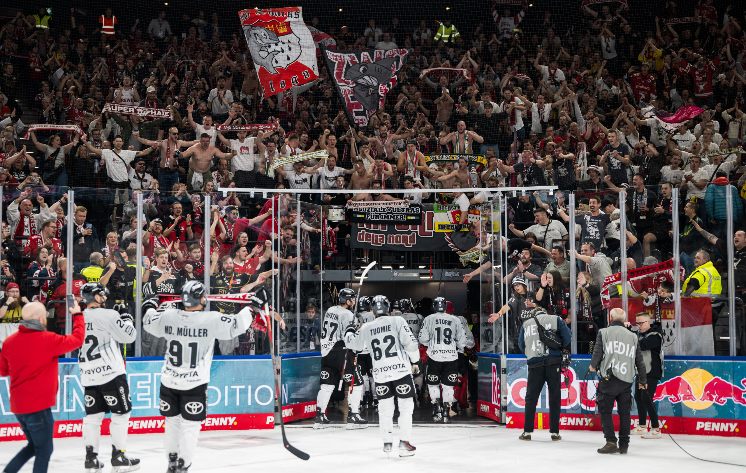 Unser Highlight der Finalserie gegen starke Eisbären Berlin ist definitiv Spiel 2 – nachdem wir das erste Spiel in der Hauptstadt trotz teils guter Leistung mit 1:5 verlieren, kommen wir im zweiten Spiel der Serie zurück, und wie. Gregor MacLeod schiet uns in der Verlängerung zum Serienausgleich, die LANXESS arena, unser Haifischbecken, beweist in dieser Partie einmal mehr, zu was sie in der Lage ist. Ein Wunder, dass das Dach nach dem Siegtreffer unserer Nummer 89 nicht weggeflogen ist. Sekunden nach dem Treffer liegt sich der klare Groteil der 18.600 Zuschauer in den Armen und es wird klar, dass die ganze Stadt im Fieber ist. Spiel 3, 4 und 5 können die Eisbären mit jeweils klaren 7:0-Siegen für sich ziehen und somit am 25. April die verdiente Deutsche Meisterschaft feiern. Nachdem die erste Enttäuschung gewichen ist, stellt sich für uns in den kommenden Tagen ein Gefühl von Dankbarkeit und auch Stolz ein. Diese unfassbare Reise wäre ohne euch nicht möglich gewesen – wir haben so viel unterstützende Energie und Liebe von Euch gespürt. Das hat uns getragen. Danke dafür!