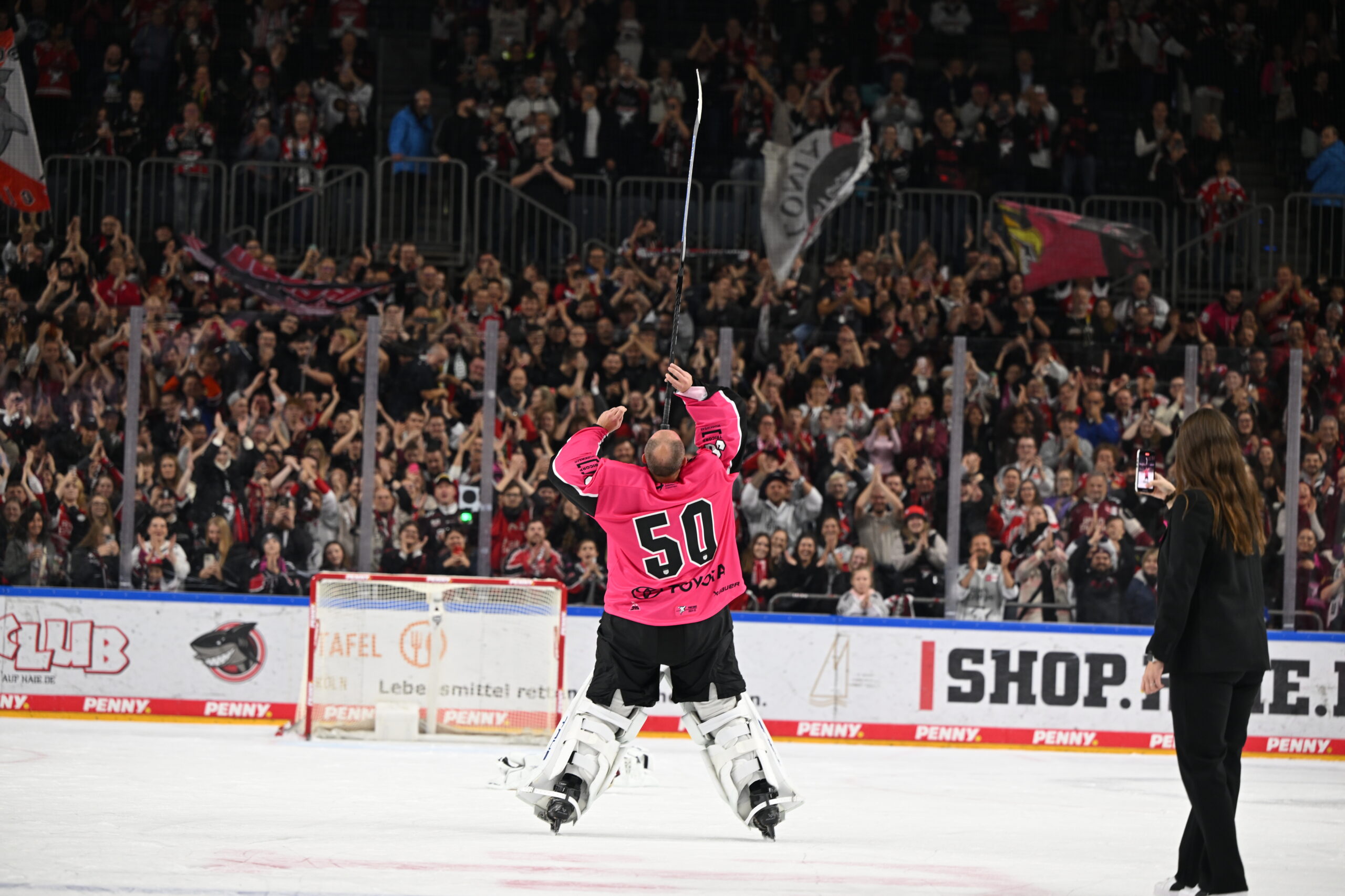 Eins dieser ausverkauften Spiele fand am Sonntag, den 16. Februar 2025 statt – wir empfingen die Düsseldorfer EG zum vierten Derby der Saison. Nachdem wir die ersten drei Partien gegen die DEG gewinnen konnten, holten wir uns in einer pickepackevollen LANXESS arena auch den vierten Derbysieg der Spielzeit und feierten dies zusammen mit euch – dabei entstand vor der Nordkurve eines unserer Lieblingsbilder dieser Spielzeit. Ein kleiner Wermuttropfen bleibt bei dem Ganzen aber doch: Die DEG stieg nach Jahrzehnten der Erstklassigkeit am Ende der Saison das erste Mal in die DEL2 ab und wird uns in der kommenden Spielzeit für Pflichtspiel-Derbys leider nicht zur Verfügung stehen. Kommt schnell wieder hoch, liebe Düsseldorfer!