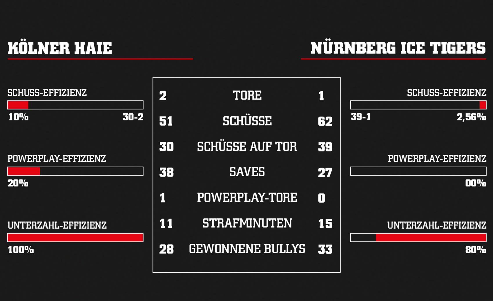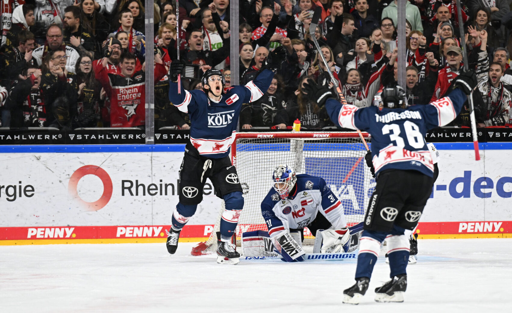 Die Haie gewinnen durch einen Treffer in der allerletzten Sekunde (!) mit 2:1 gegen starke Ice Tigers aus Nürnberg. Maxi Kammerer verwandelt mit seinem Tor die LANXESS arena unmittelbar vor Schluss in ein absolutes Tollhaus. 17.105 Fans sind Zeuge einer Partie, die so ziemlich alles hatte – inkl. eines Happy Ends, das einfach nur guttut und zeigt, dass mit den Haien einfach immer zu rechnen ist!
