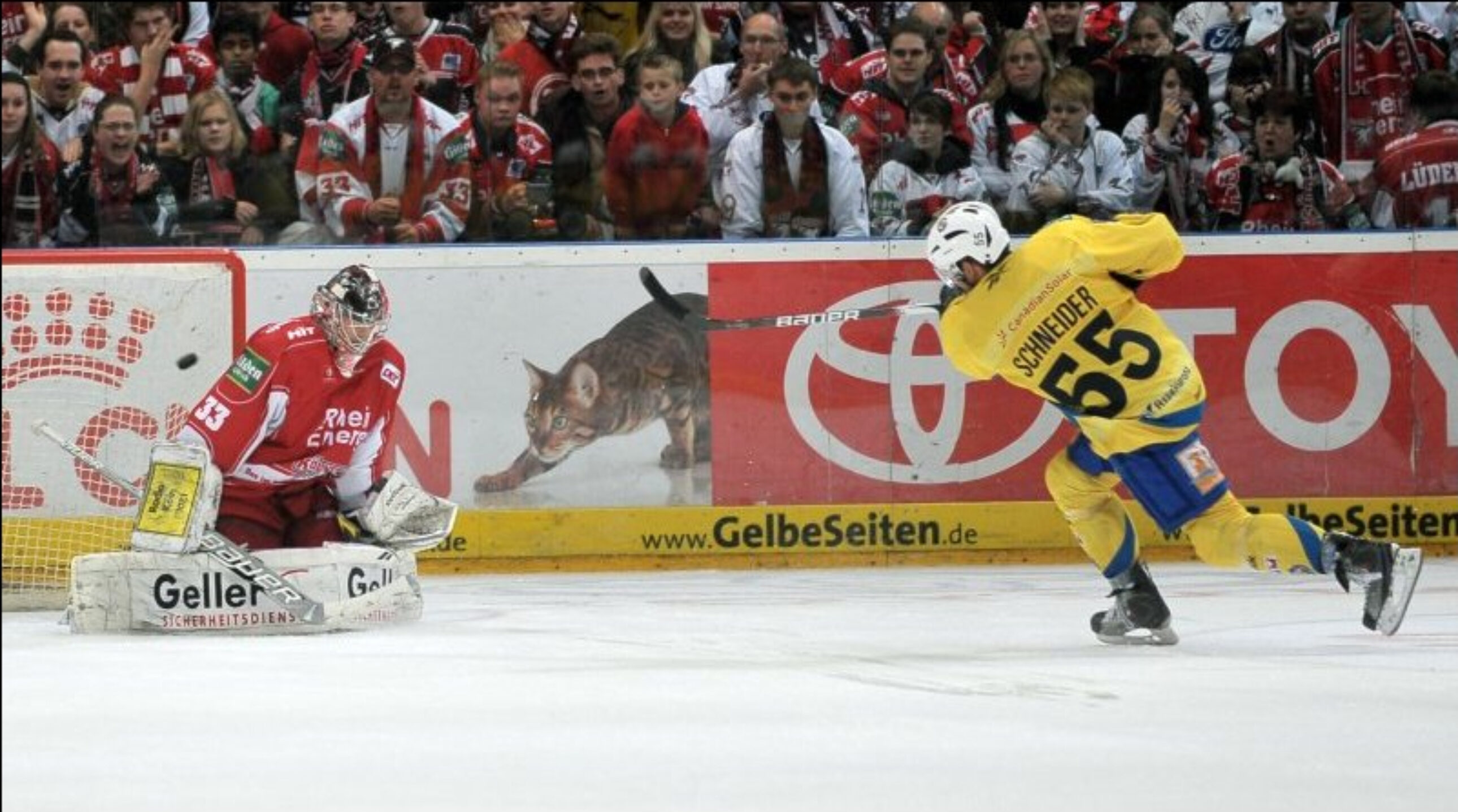 Schlielich gab Ex-Hai Bryan Adams dem Spiel die Wende, als er knapp zehn Minuten vor Schluss einschoss (51.). Kurz darauf nahm das Unheil aus Kölner Sicht seinen Lauf, als Schiedsrichter Brüggemann nach einem Kölner Stockwurf in einen Münchner Konter hinein auf Penalty entschied. Eric Schneider verwandelte humorlos zum 1:2 (53.). Die Haie warfen noch mal alles in die Waagschale, doch Gogulla scheiterte per Bauerntrick, Matt Pettinger gar erst am Pfosten und der Alleingang von Alex Wei wurde per Foul gestoppt. Da der Referee das Vergehen auf gleicher Höhe zum Angreifer bewertete, blieb diesmal die Penalty-Entscheidung aus. Auch mit zwei Mann mehr rannten die Haie vergeblich an, München rettete den Sieg über die Zeit.
