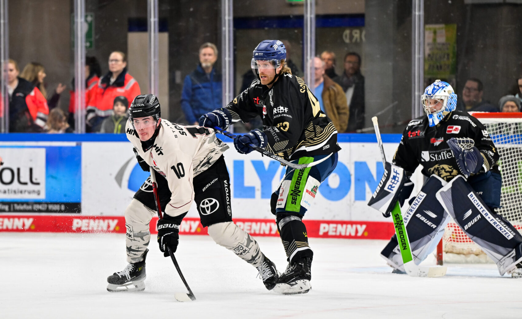Wir unterliegen in einem umkämpften Auswärtsspiel den Straubing Tigers am Ende mit 1:3. Nachdem David McIntyre unserer Mannschaft im ersten Drittel in Führung bringt, drehen die Tigers mit einem Doppelschlag innerhalb von 30 Sekunden die Partie und sorgen mit einem weiteren Treffer im Schlussdrittel für den Endstand.