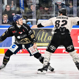 In einem weiterhin spannenden und temporeichen Spiel hatte unsere Mannschaft dabei die besseren Torchancen. Jason Bast zog aus dem Lauf ab, setzte die Scheibe jedoch knapp am langen Pfosten vorbei (27.). Acht Minuten darauf hatte Gregor MacLeod die Grochance auf das 2:0. Nachdem er von Justin Schütz bedient wurde konnte unserer Nummer 89 den Platz im Slot ebenso nicht nutzen, wie anschlieend Schütz und Grenier im Nachsetzen. So kam es, wie es so häufig kommt, wenn man diese Chancen ungenutzt lie – und dies gleich doppelt. Denn mit einem Doppelschlag innerhalb von 30 Sekunden drehten die Tigers die Partie. Fonstad machte es bei einem Drei-auf-Zwei-Konter selbst und traf halbhoch zum Ausgleich. Sekunden darauf bekam Samanski zu viel Platz in unserem Drittel und nutze dies zur Führung für die Hausherren (38.).