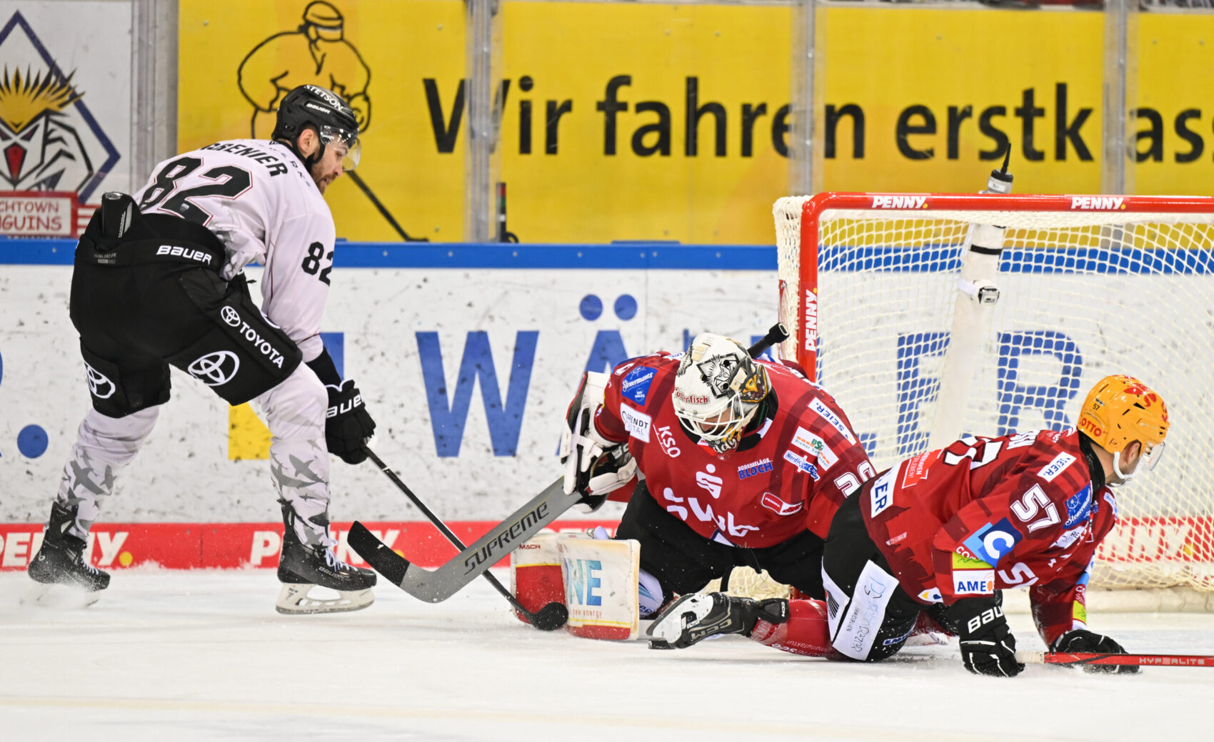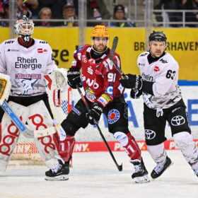 Mit dem zweiten Drittel kamen wir besser ins Spiel, mussten bei den Gelegenheiten der spielsicher auftretenden Gastgeber aber immer wieder auf der Hut sein. Nachdem wir unser erstes Überzahlspiel der Partie ungenutzt lieen, bekamen die Pinguins in der zweiten Hälfte des zweiten Mittelabschnitts zwei Powerplay-Möglichkeiten nach Strafen gegen Louis-Marc Aubry und Jan Luca Sennhenn und dadurch die Gelegenheit für gute Chancen. Ancicka war bei den Abschlüssen von McKenzie (34.), Conrad und Bruggisser (jeweils 39.) aber zur Stelle – und diese konzentrierte Defensivarbeit im Verbund sollte sich kurz vor Abschluss des Mittelabschnitts auszahlen.