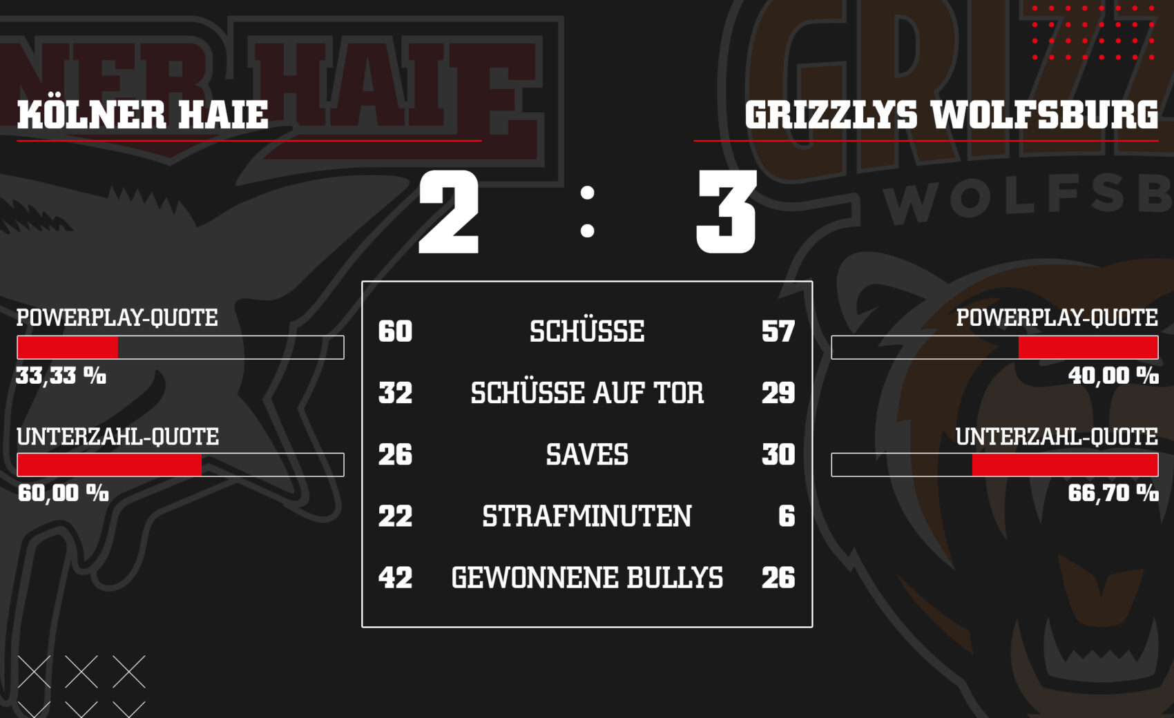 Wir verlieren unser Heimspiel gegen die Grizzlys Wolfsburg knapp mit 2:3. Nachdem wir zwischenzeitlich mit 0:3 hintenliegen, kommen wir durch zwei späte Treffer nochmal heran, müssen uns am Ende aber nicht unverdient geschlagen geben. Wir haben den Spielbericht.