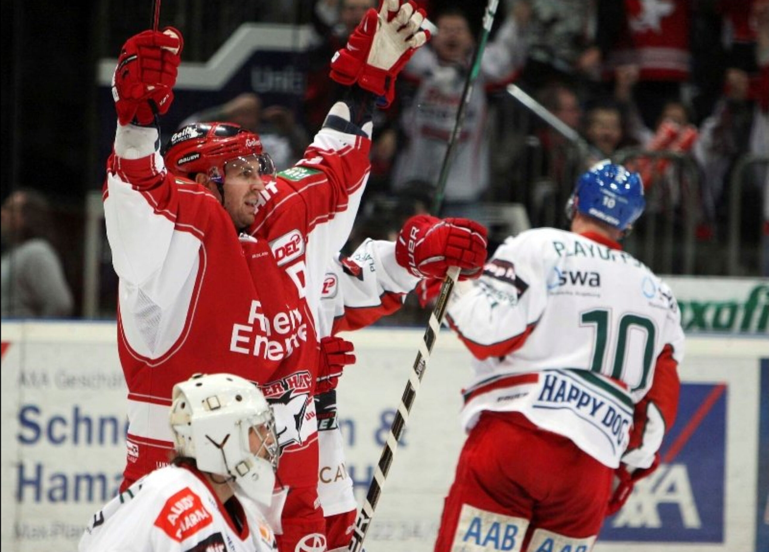 Jubel-Party in der Arena!!! Wer hätte das vor drei Wochen für möglich gehalten? Die Haie haben den Einzug ins Viertelfinale perfekt gemacht! Die Playoffs gehen in Köln in die nächste Runde! Der KEC legte nach dem 5:1 am Mittwoch direkt nach und schoss die Augsburger Panther am Donnerstagabend mit 3:1 aus dem Wettbewerb. Die Fans feierten erleichtert und glücklich und dürfen sich jetzt auf die Runde der letzten Acht freuen!