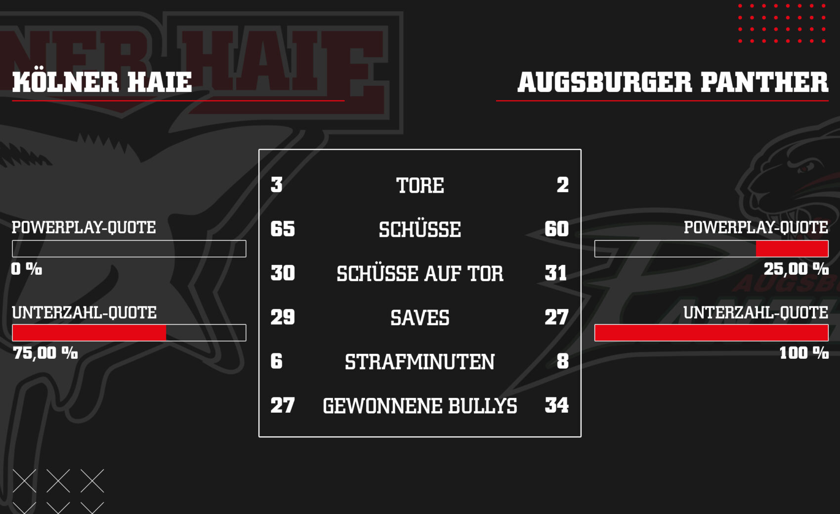 0:1 Moritz Elias (Oblinger) 36. Minute; 1:1 Alexandre Grenier 37. Minute; 1:2 Chris Collins (Sacher, Mitchell) 47. Minute; 2:2 Frederik Storm (Bailen, Mo. Müller) 52. Minute; 3:2 Maximilian Kammerer/Penalty Shot 55. Minute