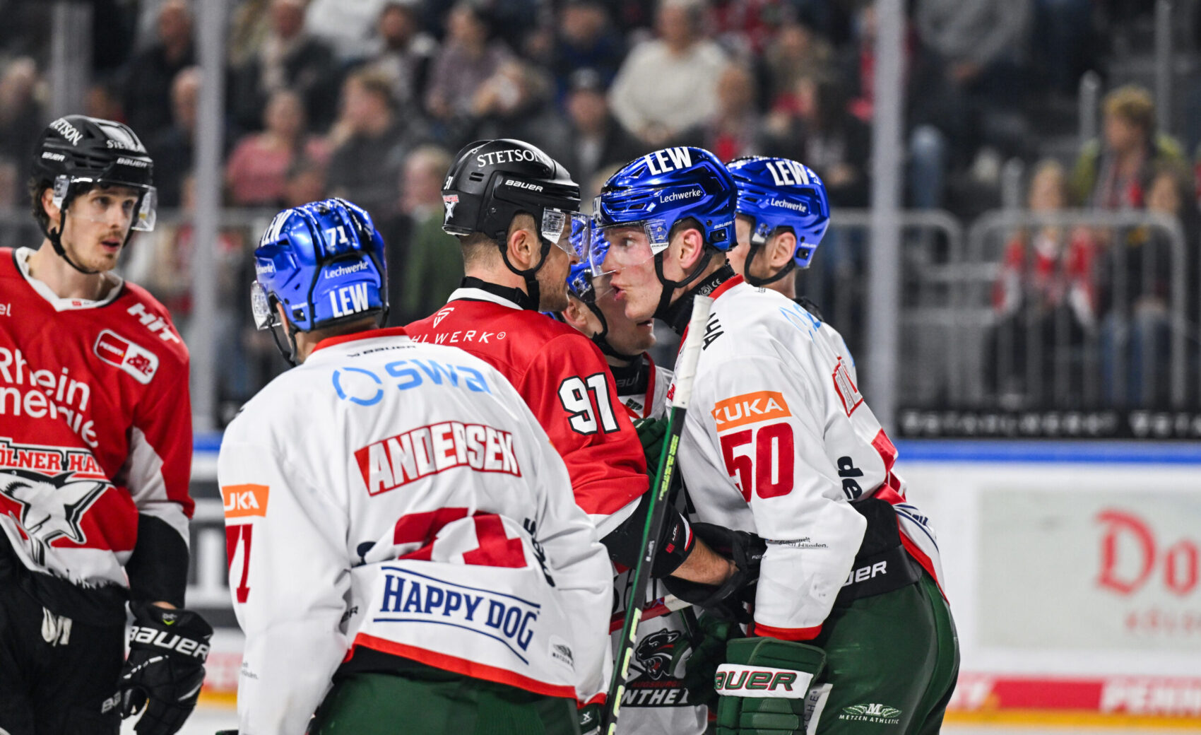 Vierter Sieg in Folge! Wir gewinnen unser Heimspiel gegen die Augsburger Panther mit 3:2 – bis zehn Minuten vor Schluss liegen wir mit 1:2 hinten, geben aber nicht auf und drehen durch Tore von Frederik Storm und Maximilian Kammerer die Partie gegen einen guten Gegner.
