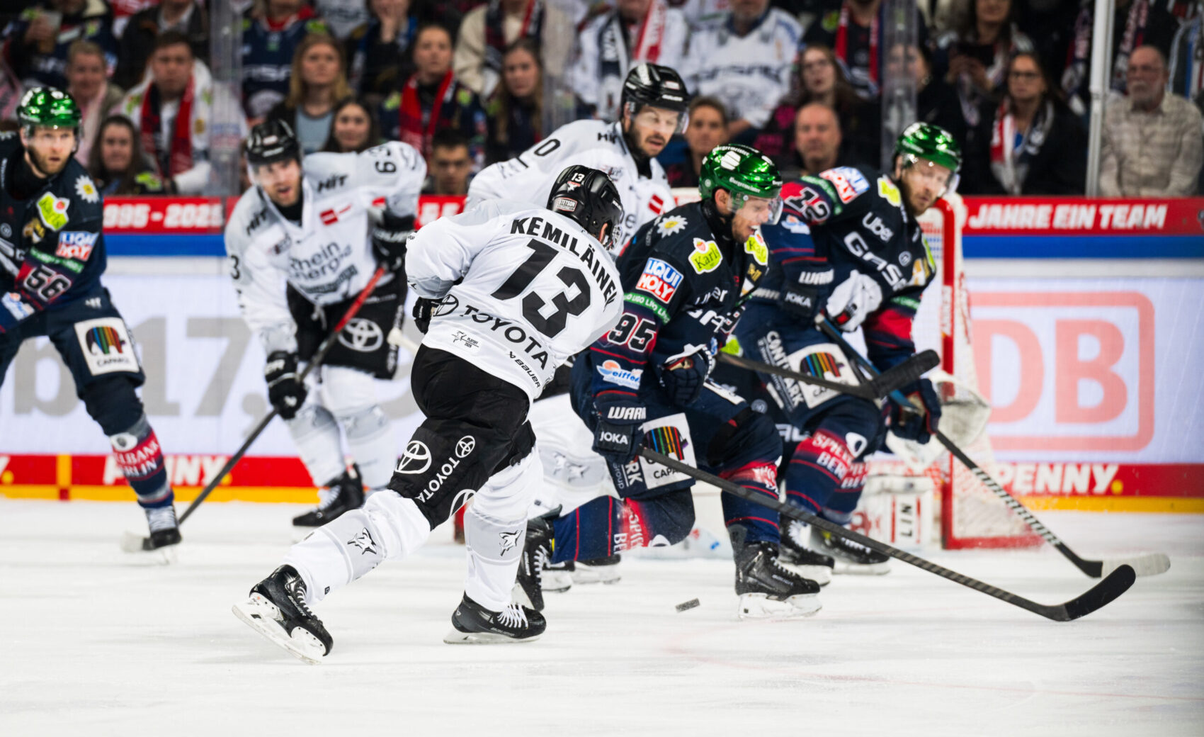 1:0 Adam Smith (Tiffels, Müller) 5. Minute; 2:0 Moritz Kretzschmar (Smith, Tiffels) 7. Minute; 2:1 Valtteri Kemiläinen (Powerplay/Aubry, MacLeod) 9. Minute; 3:1 Marcel Noebels (Eder, Kirk) 24. Minute; 4:1 Jonas Müller (Tiffels, Ronning) 25. Minute; 4:2 Patrick Russell (Shorthander/Tyrväinen, Austin) 34. Minute; 5:2 Moritz Kretzschmar (Kirk) 36. Minute; 6:2 Les Lancaster (Empty Net/Kirk, Smith) 58. Minute; 6:3 Gregor MacLeod (van Calster, Austin) 59. Minute