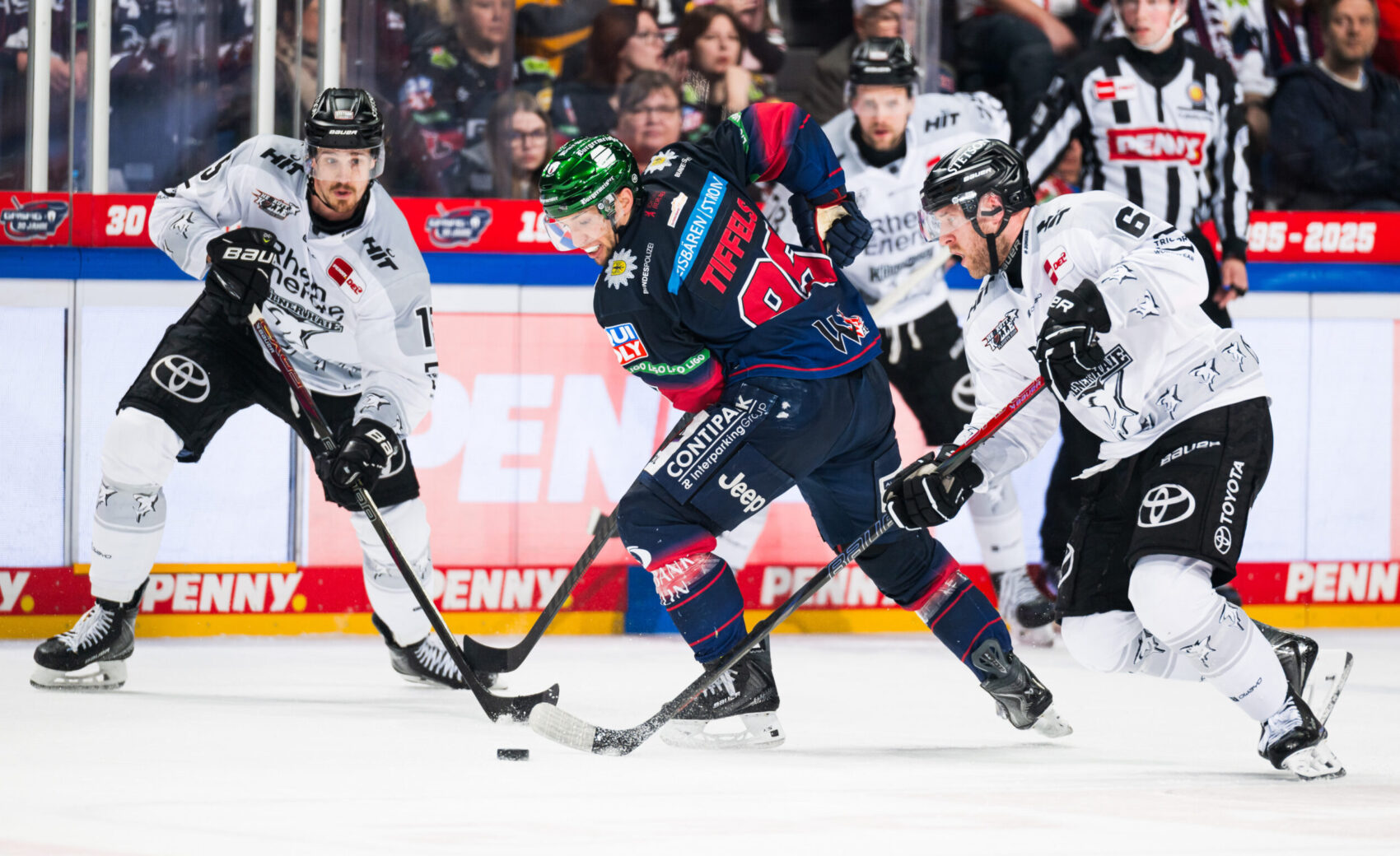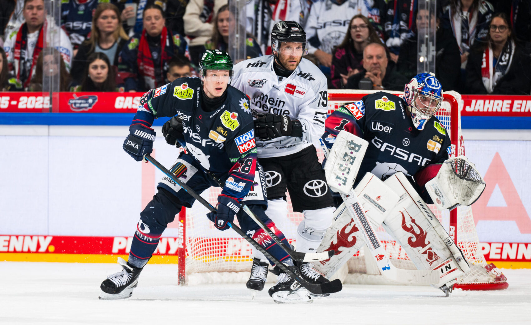 Zum Schlussdrittel wechselten wir im Tor: Felix Brückmann kam für Juvonen und parierte direkt stark mit dem Schläger gegen Frederik Tiffels im Alleingang. Wir suchten weiter den Weg nach vorn, kamen durch Russell, Aubry und Kero zu Abschlüssen, fanden aber mehrfach in Berlins Goalie unseren Meister. Ein Powerplay in der 45. Minute brachte mehrere gefährliche Schüsse – unter anderem von Kemiläinen, Oliwer Kaski und Russell – doch die Berliner blockten viel und Stettmar parierte stark.