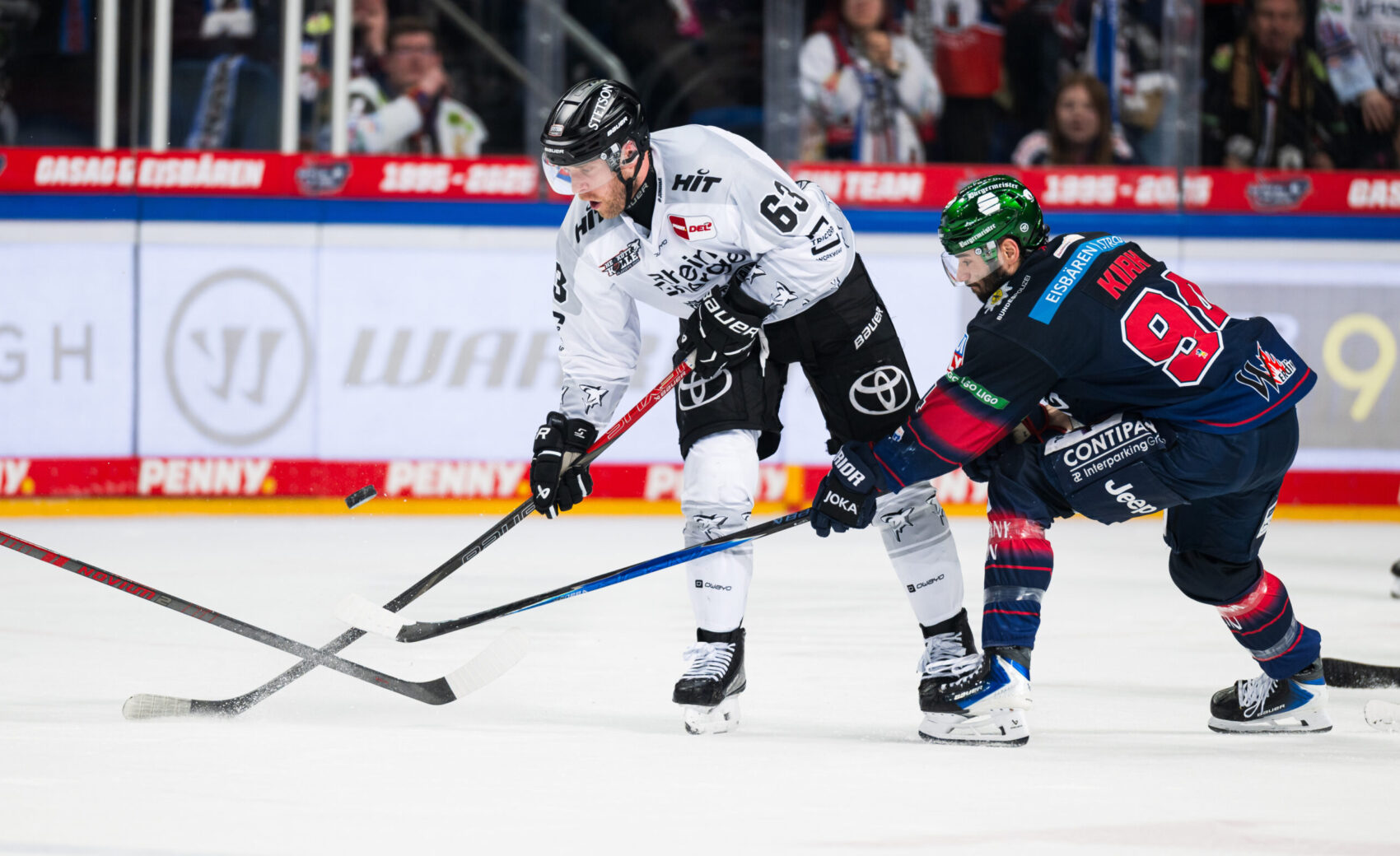 Wir blieben aktiv, erspielten uns ein Powerplay und trafen in dieser Phase die Latte durch Oliwer Kaski. In Unterzahl gelang uns der wichtige Anschluss: Nach einem Puckgewinn leitete Juhani Tyrväinen einen Konter ein und bediente Patrick Russell am langen Pfosten, der zum 2:4 einschob. Wenig später verpasste Louis-Marc Aubry frei vor dem Tor den Anschluss, sein Abschluss sprang vom Pfosten zurück. Stattdessen nutzten die Eisbären einen Scheibenverlust während unseres Wechsels. Kretzschmar traf mit seinem zweiten Treffer des Abend zum 2:5 – was auch der Spielstand nach 40 Minuten bleiben sollte.