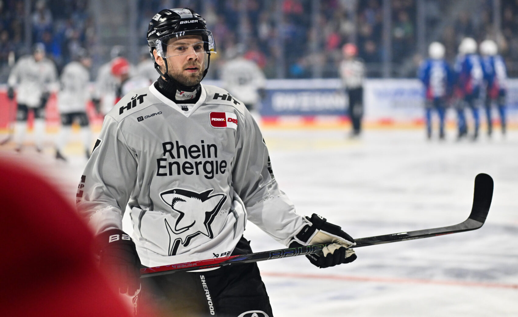 Zwar drückten die Gastgeber nun auf das Gaspedal und hatten gleich mehrere gute Gelegenheiten, doch spätestens mit der Fünf-Minuten-Strafe gegen Leon Gawanke (plus Spieldauer), der Josh Currie einen unnötigen Kniecheck verpasste, änderte sich das Momentum zu Gunsten unserer Haie. Von Minute 37 hatten wir ein fünfminütiges Powerplay und nutzten dieses mit der letzten Aktion des Mittelabschnitts. Über seine Landsmänner Currie und Aubry landete die Scheibe bei Grenier, der halblinks vor dem Slot mit einem Handgelenkschuss sehenswert in den Winkel traf – 2:1 (40.). Mit der knappen Führung ging es in das dritte Drittel.