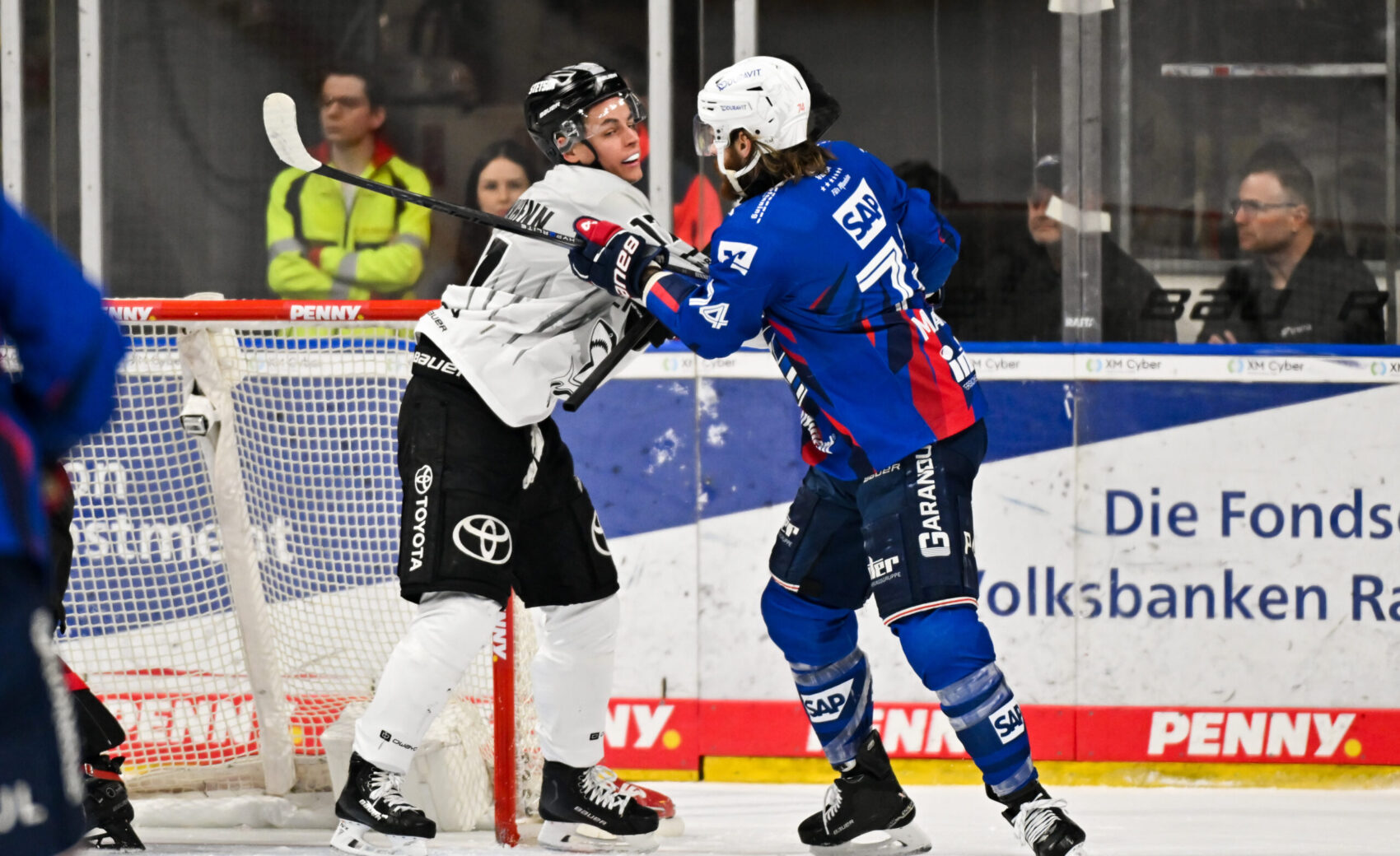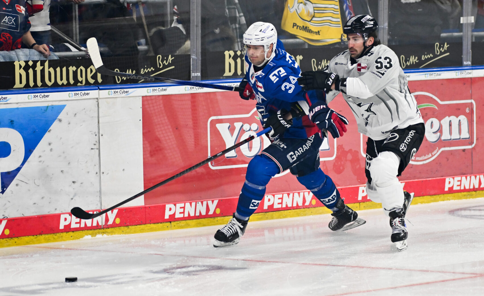 Das letzte Drittel war ähnlich intensiv und packend wie die beiden Drittel zuvor. Die Mannheimer, die zuletzt neun Heimspiele in Folge gewinnen konnten und zur Spitzengruppe der Liga gehören, versuchten weiterhin, das Spielgeschehen zu bestimmen, doch wir hielten voll dagegen. In zwei Situationen unmittelbar aufeinanderfolgend leider etwas zu forsch, weswegen wir binnen kürzester Zeit gleich zwei Strafen bekamen. Die Folge? Doppelte Überzahl für 90 Sekunden für die Adler, die zwischen Minute 43 und 45 gleich mehrfach am Ausgleich schnupperten.