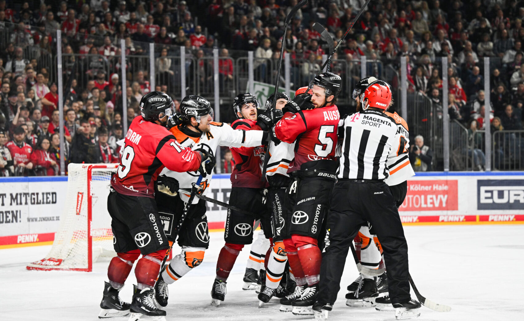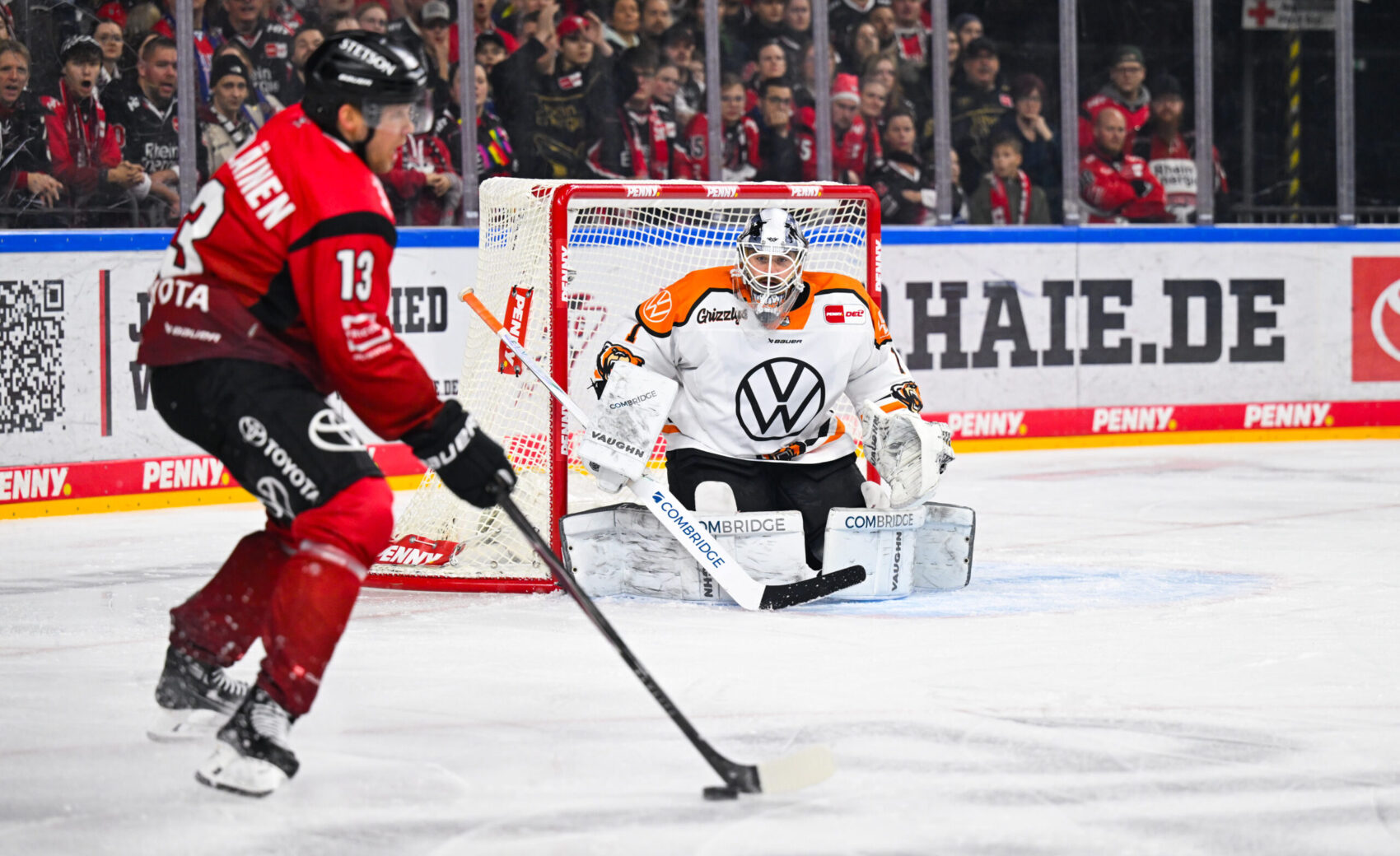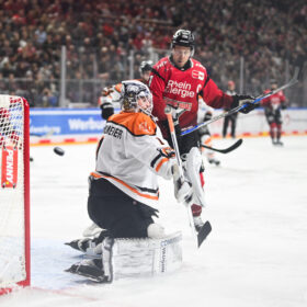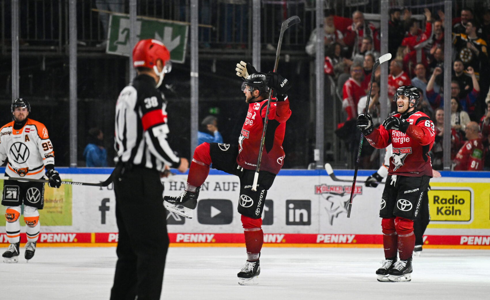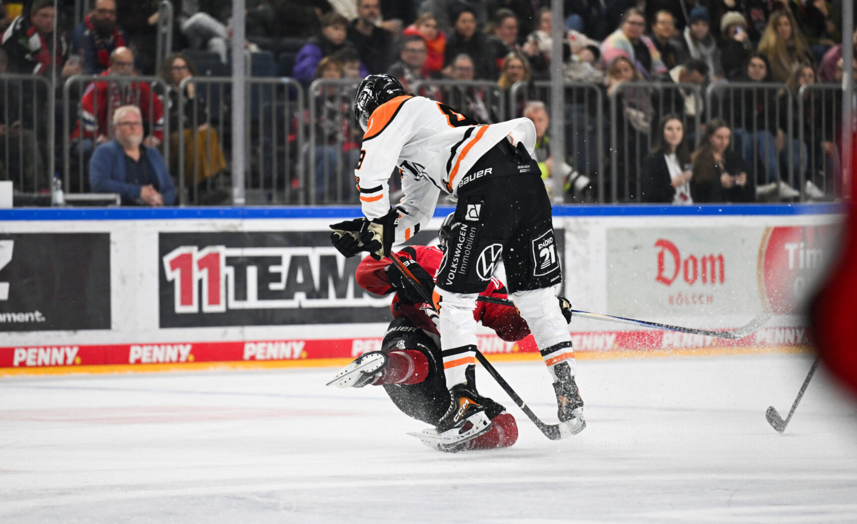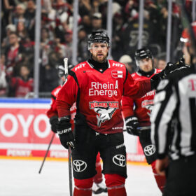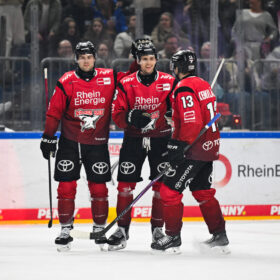 Als das Spiel sich dem Ende näherte, ging Gästecoach Mike Stewart „all-in“ und zog gut drei Minuten vor Ablauf der Zeit seinen Goalie – und dieser Schachzug sollte schnell belohnt werden. Nur wenige Sekunden nachdem Strahlmeier das Eis verlassen hatte, erzielte Smith im Rebound das nicht unverdiente 3:1. Der starke Juvonen hatte das erste (und zum Glück letzte Mal) an diesem Abend das Nachsehen. Kurz erhöhte sich der Puls des Großteils der 16.882 Zuschauer in der LANXESS arena, da es sich die Wolfsburger kurz darauf wieder mit sechs Spielern in unserer Zone gemütlich machten, doch Maximilian Kammerer mit einem „Empty Netter“ setzte dem kurzen Spuk ein Ende. Er traf in der 60. Minute zum finalen 4:1.