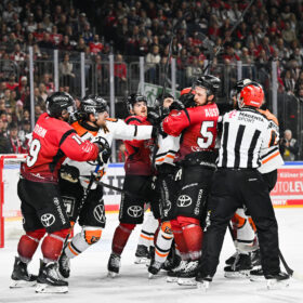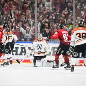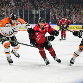 Wir gewinnen unsere Heimpartie gegen die Grizzlys Wolfsburg mit 4:1. Valtteri Kemiläinen, Dominik Bokk, Brady Austin und Maximilian Kammerer tragen sich auf unserer Seite in die Torschützenliste ein – bis kurz vor Schluss sieht es nach einem Shutout aus, doch Wolfsburgs Mut, beim Stand von 0:3 den Goalie zu ziehen, wird prompt belohnt, sodass die Grizzlys in der 57. Minute zum verdienten Ehrentreffer kommen. Wir haben den Spielbericht zum Heimsieg über die Niedersachsen.