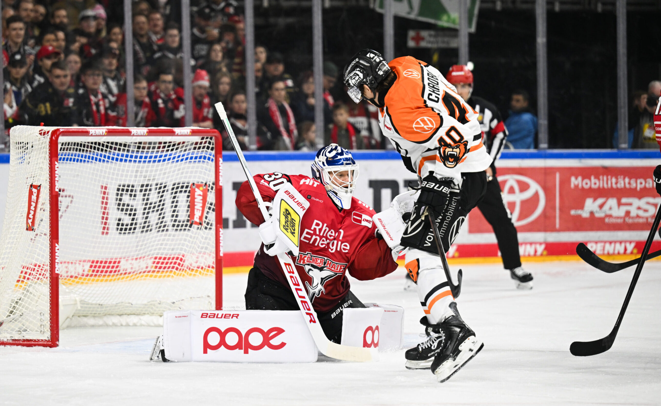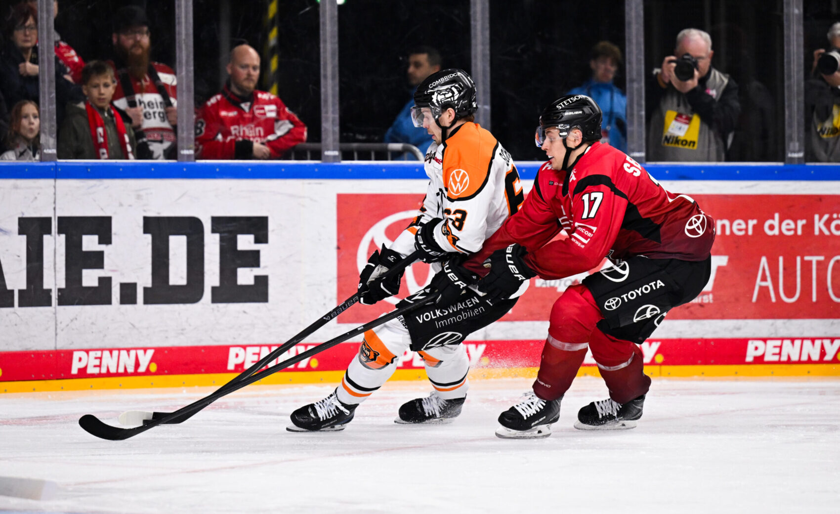 Das Spiel brauchte vor 16.822 Zuschauern in der LANXESS arena keinen langen Anlauf – nach 16 Sekunden kam Nate Schnarr zu einem ersten guten Abschluss, den Dustin Strahlmeier im Wolfsburger-Kasten jedoch entschärfen konnte. Wir blieben weiterhin am Drücker, Patrick Russell wurde von Parker Tuomie gut freigespielt, scheiterte aber mit seinem Schuss gegen die Laufrichtung am Schoner Strahlmeiers (4.).