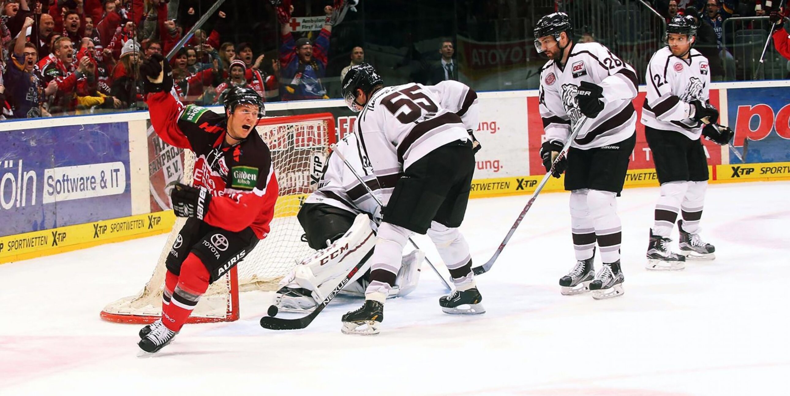 Die Kölner Haie schlagen die Thomas Sabo Ice Tigers aus Nünberg mit 4:2 nach Penaltyschieen. Per Åslund trifft zum Sieg.