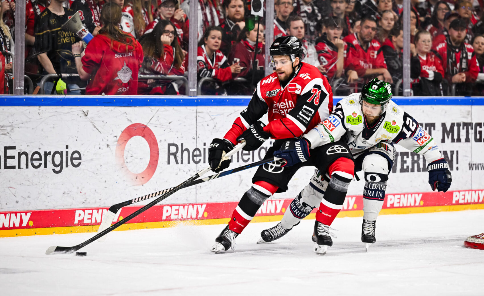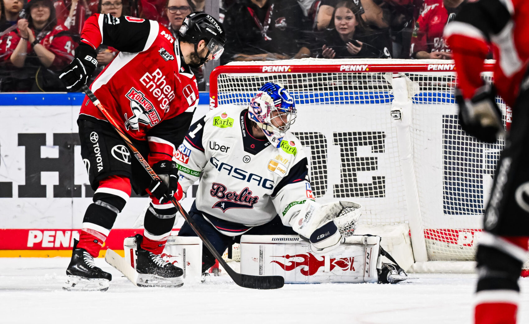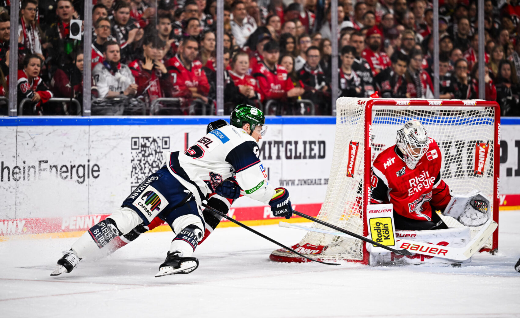 Das Spiel blieb eng, auf Augenhöhe und für die 18.600 Fans in der ausverkauften LANXESS arena äußerst unterhaltsam – Bokk verwertete ein Zuspiel Storms in der 33. Minute nach schönem Gegenangriff zur Führung. Hildebrand, der das „Play“ ahnte, machte sich vergebens lang und verletzte sich leider bei der Aktion. Er wurde durch Jonas Stettmer ersetzt – gute Besserung an dieser Stelle! Mit der knappen Führung ging es in das letzte Drittel.