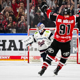 Und in dieser erzielte Bokk in der 78. Minute den emotionalen Siegtreffer. Der Angreifer fasste sich in der neutralen Zone ein Herz, drang mit Geschwindigkeit in die gegnerische Zone ein und zog per Handgelenkschuss ab. Der Puck landete im Winkel und sorgte an einem besonderen Abend für den 4:3-Sieg nach Verlängerung.