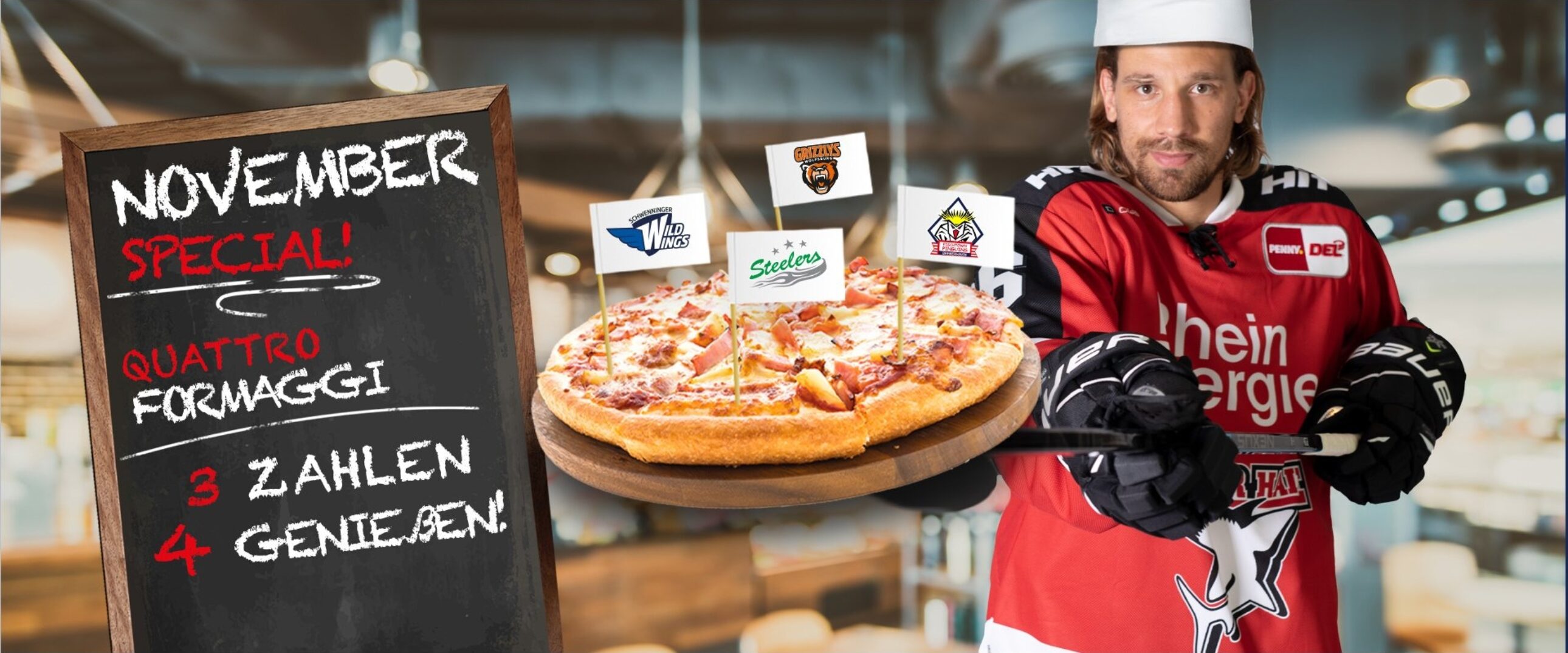 Frisch aus dem Ofen servieren Euch die Kölner Haie einen echten Leckerbissen. 4x Haie genieen – 3x zahlen: Die vier Heimspiele gegen die Schwenninger Wild Wings (02. November 2021), die Bietigheim Steelers (19. November 2021), die Fischtown Pinguins aus Bremerhaven (23. November 2021) und die Grizzlys Wolfsburg (25. November 2021) werden zu besonderen Paketpreisen ab 57,00€ und für Dauerkarteninhaber ab 47,00€ angeboten.