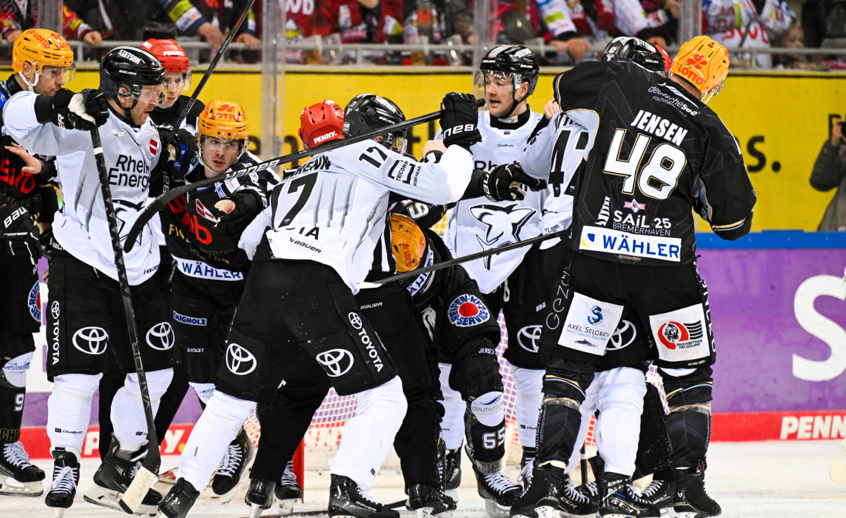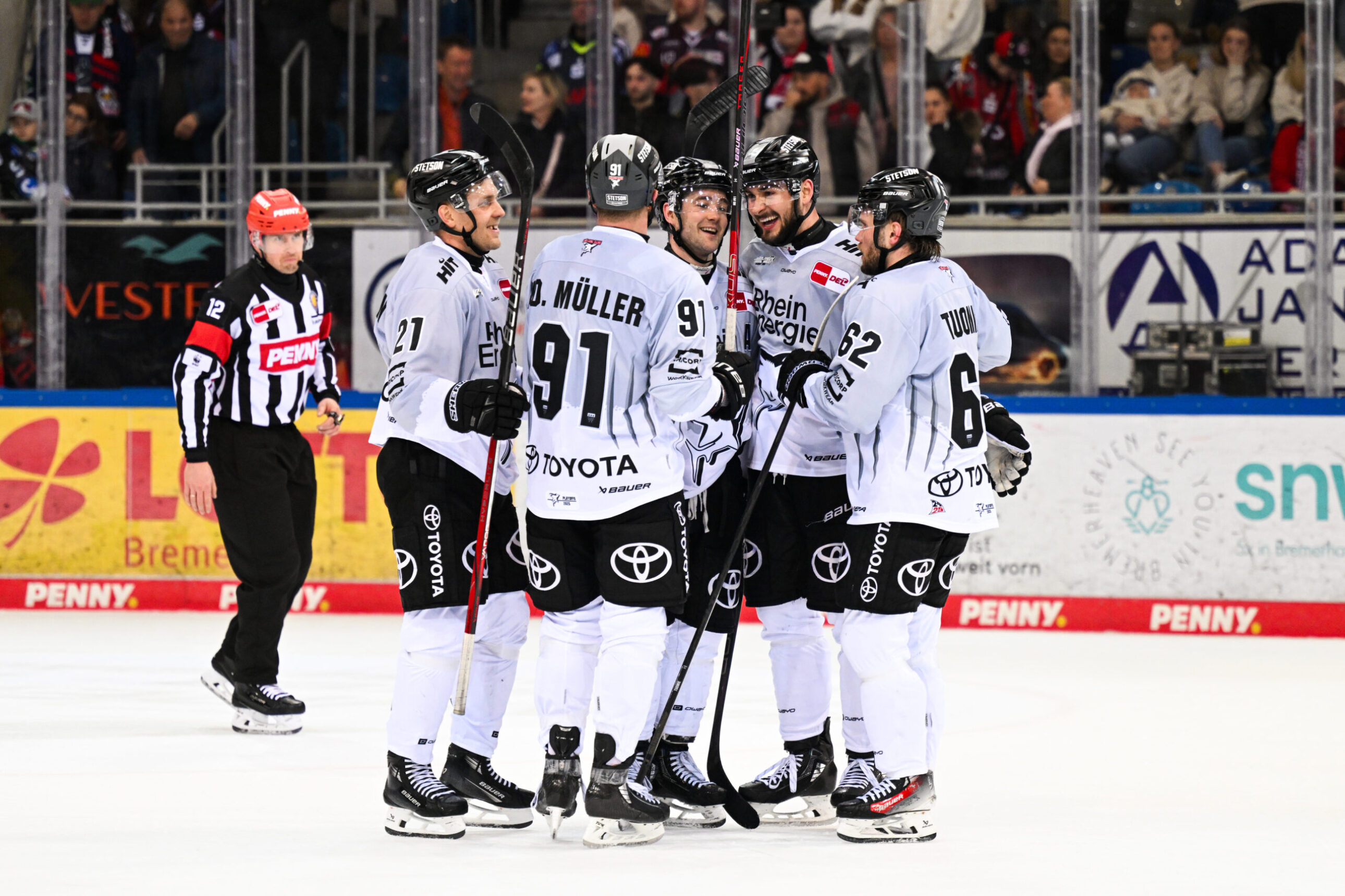 Im Duell des Hauptrundendritten (Bremerhaven) gegen den Hauptrundensechsten (Köln) entwickelte sich von Beginn an das erwartet intensiv umkämpfte Spiel mit zwei gut sortierten Defensivreihen. Dabei hatten die Hausherren in den ersten Minuten, auch bedingt durch frühe Strafzeiten gegen unsere Mannschaft, mehr von der Partie und gaben Schuss um Schuss auf den Kasten von Julius Hudacek ab. Der Slowake war jedoch stets auf dem Posten und entschärfte die Situationen, wie auch einen Direktschuss von Jan Urbas in Unterzahl (4.). Ab der 8. Spielminute, als MacLeod freistehend vor dem Bremerhavener Tor die Scheibe nicht richtig traf, kam auch unsere Mannschaft besser in der Partie an – um spätestens nach dem ersten Powerbreak nun auch die besseren Chancen zu haben.