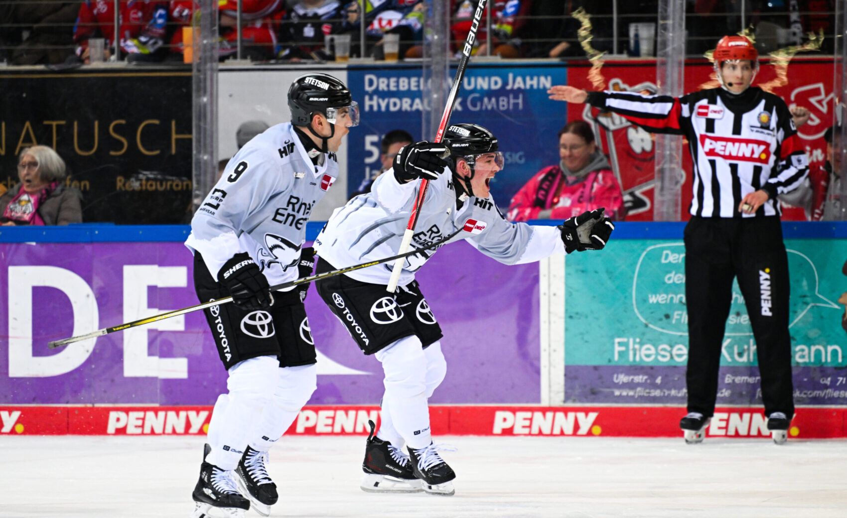 Wir gewinnen Spiel 1 der Playoff Viertelfinal-Serie bei den Fischtown Pinguins Bremerhaven mit 5:0. Brady Austin, Gregor MacLeod, Parker Tuomie, Louis-Marc Aubry und Josh Currie erzielen dabei unsere Tore, während Julius Hudacek einen Shutout feiern darf. Wir haben den Spielbericht.