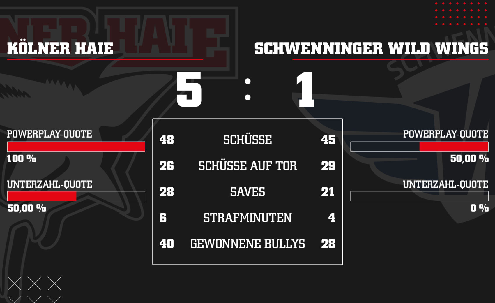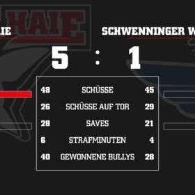Wir gewinnen unser Heimspiel gegen die Schwenninger Wild Wings dank einer konzentrierten und geschlossenen Mannschaftsleistung verdient mit 5:1. Gerade in der Defensive verrichtet unser Team einen großartigen Job und darf sich nach Spielende zurecht vom Großteil der 18.600 Fans im Haifischbecken feiern lassen.