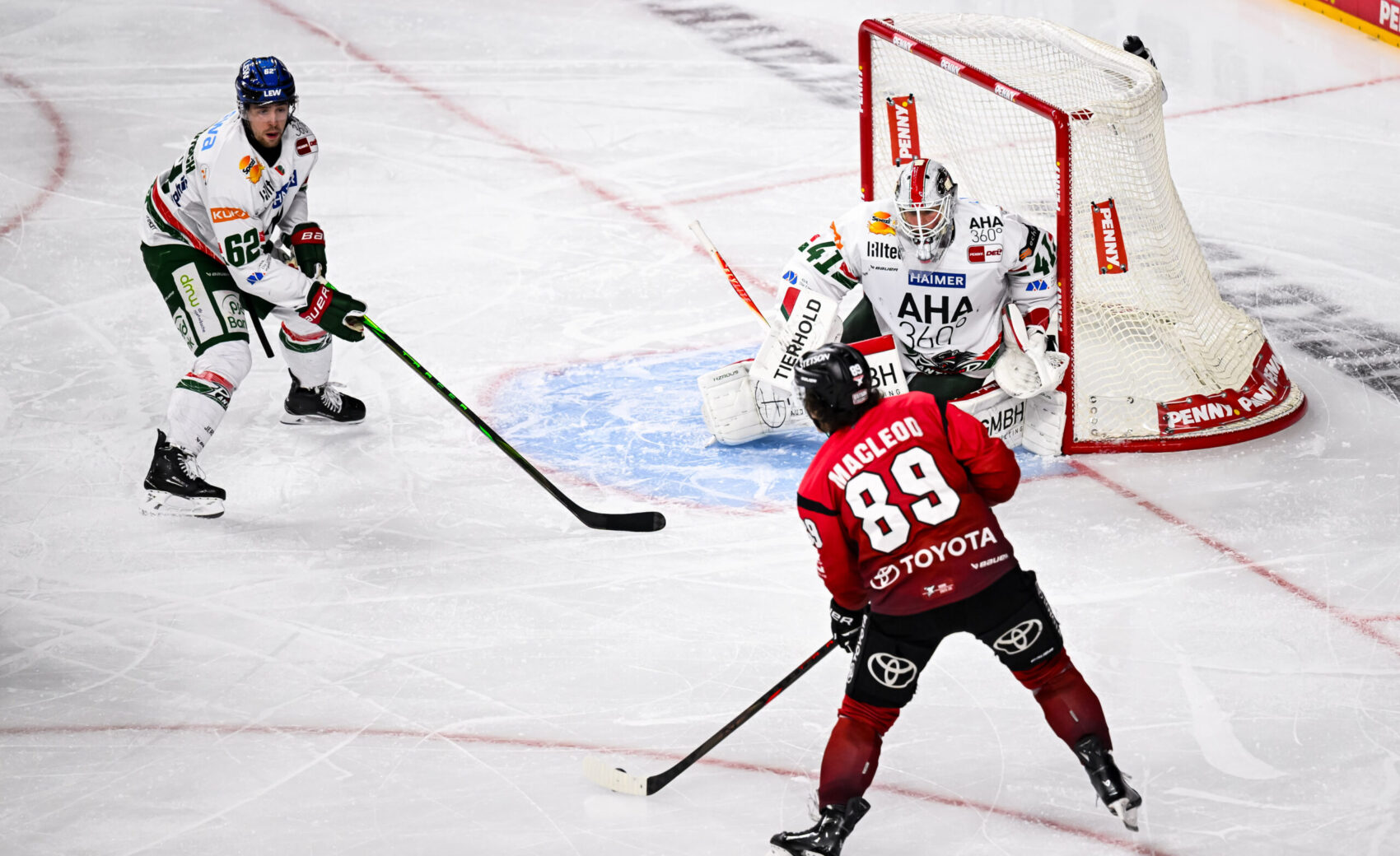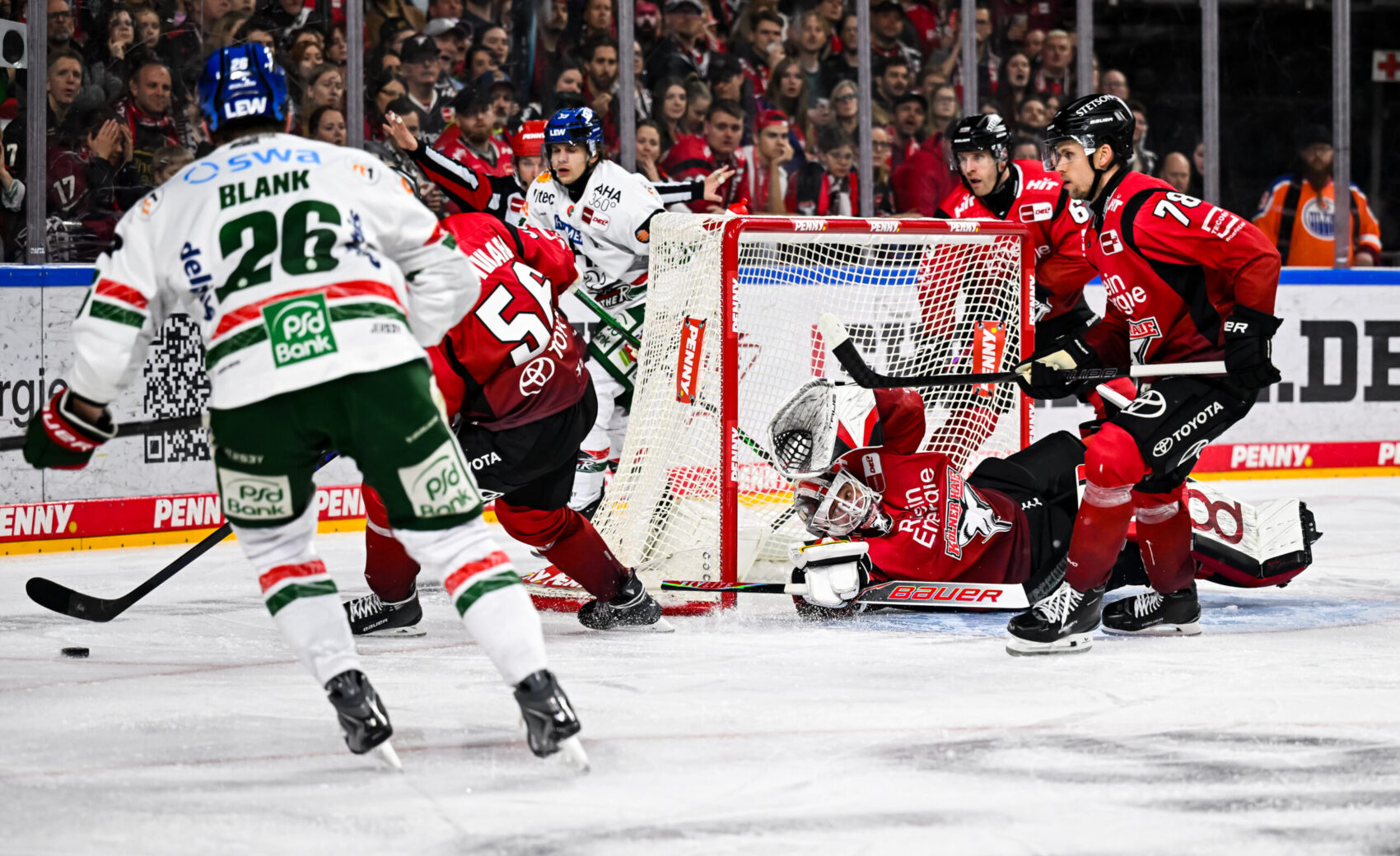Anschließend kamen die Gäste aus der Fuggerstadt besser in die Partie, scheiterten mit ihren Abschlüsse jedoch am starken Felix Brückmann, der an diesem Abend für Janne Juvonen zwischen den KEC-Pfosten stand. Kurz vor Ende des Startdrittels war es erneut Kevin Niedenz, der für den zweiten Torschrei der 18.600 Zuschauer sorgte. In ähnlicher Position wie bei seinem ersten Treffer kam der Stürmer mit der Rückennummer 46 aus zentraler Position zum Abschluss und traf unhaltbar für AEV-Goalie Peyton Jones zur 2:0-Drittelführung.