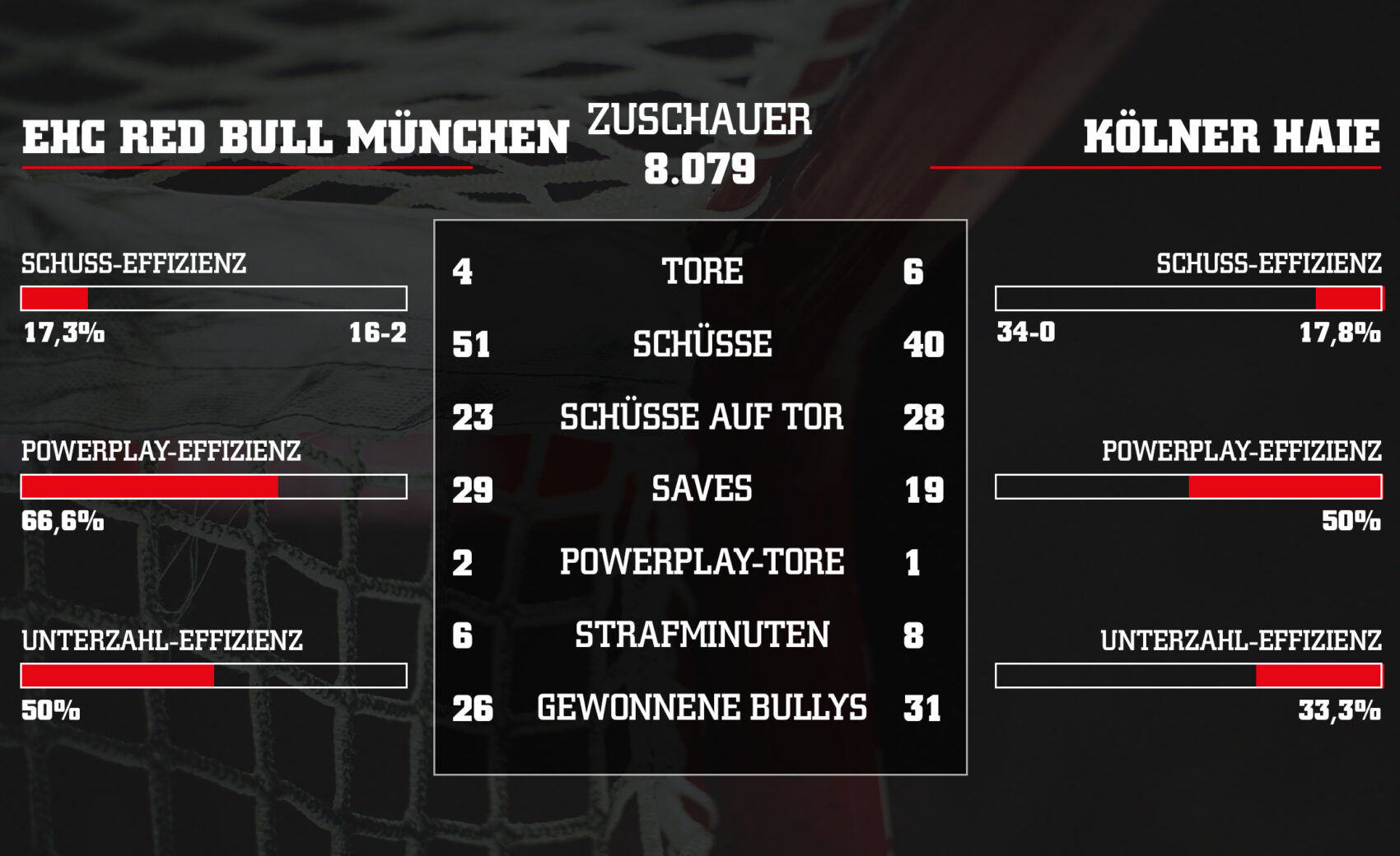 - Beide Teams konnten im Powerplay Tore erzielen (München zwei, wir eins)