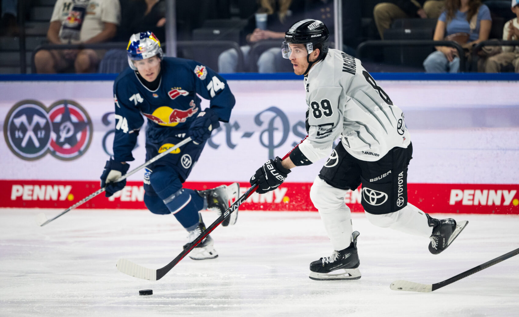Inmitten der besten Münchner Phase konnten wir ein wunderschönes und gleichzeitig wichtiges Tor erzielen – Schütz leitete den Angriff selbst ein und konnte dann von einer wunderbaren Vorarbeit van Calsters und Greniers profitieren, 4:3 (50.). Das Spiel war nun in seiner wildesten Phase. Red Bull konnte wieder ausgleichen. Benjamin Smith leistete gute Arbeit im Slot und hielt seine Kelle in den Schuss von Eisenschmid, sodass Julius Hudacek in seinem zweiten Spiel für uns im Kasten beim abgefälschten Versuch keine Chance hatte, der erneute Ausgleich.