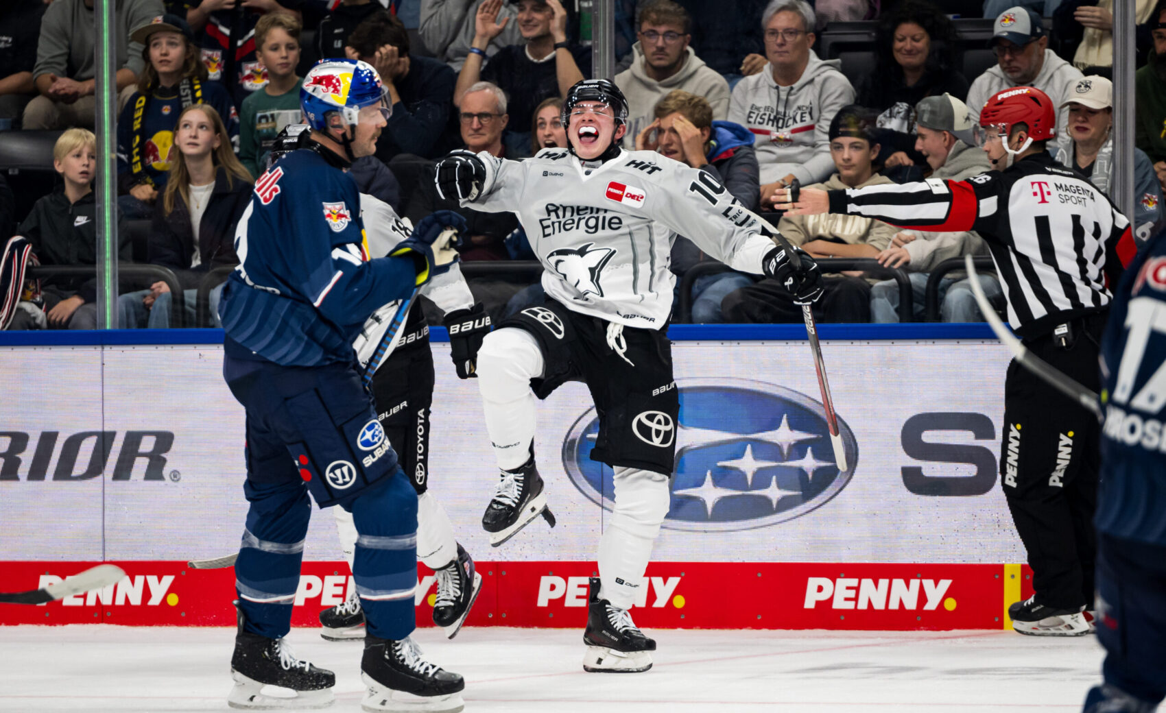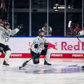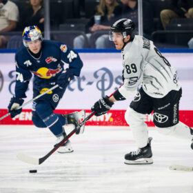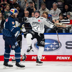 In einem äuerst unterhaltsamen Spiel im neuen Münchner SAP Garden gewinnen wir mit 6:4 beim EHC Red Bull München. Nachdem die Gastgeber auf unsere Führungen immer wieder Antworten in Form von Ausgleichstoren haben, ziehen wir kurz vor Schluss entscheidend davon. Beim Mannschaftserfolg sticht Justin Schütz mit insgesamt fünf Punkten und einem VIERERPACK hervor. Wir haben den Spielbericht zu einer wilden Partie.