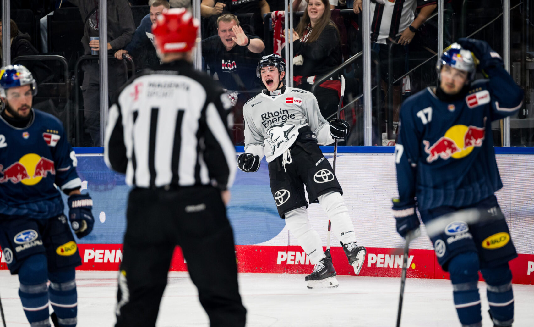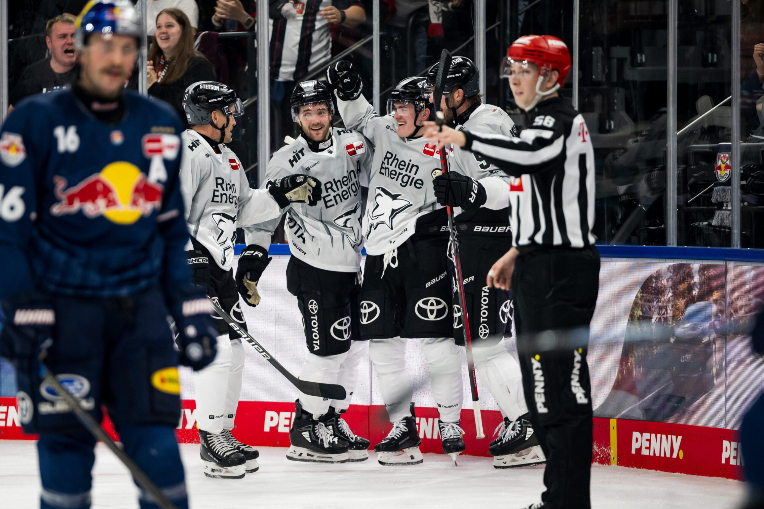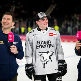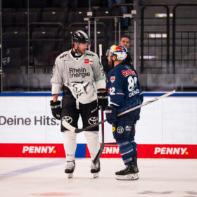 Nach dem Spiel feierte die Mannschaft auf dem Eis mit den mitgereisten Fans den wichtigen Sieg in der bayrischen Landeshauptstadt und tritt die Heimreise nach Köln mit drei ganz wichtigen Punkten im Gepäck an!