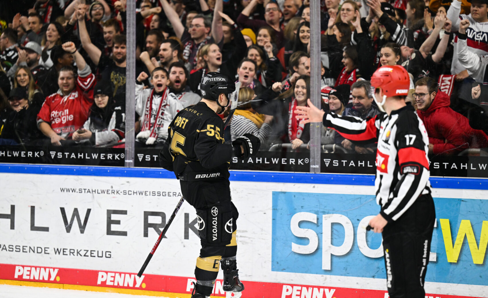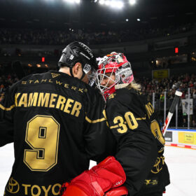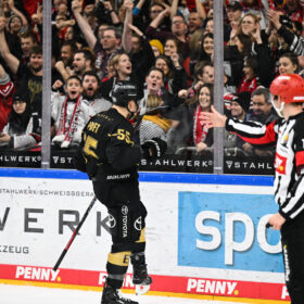 Die Haie-Fans feierten im letzten Drittel eine stimmungsvolle Eishockey-Party und durften zwei weitere Tore bejubeln. Alex Roach und Maxi Kammerer sorgten mit ihren Treffern für den 7:1-Heimsieg.