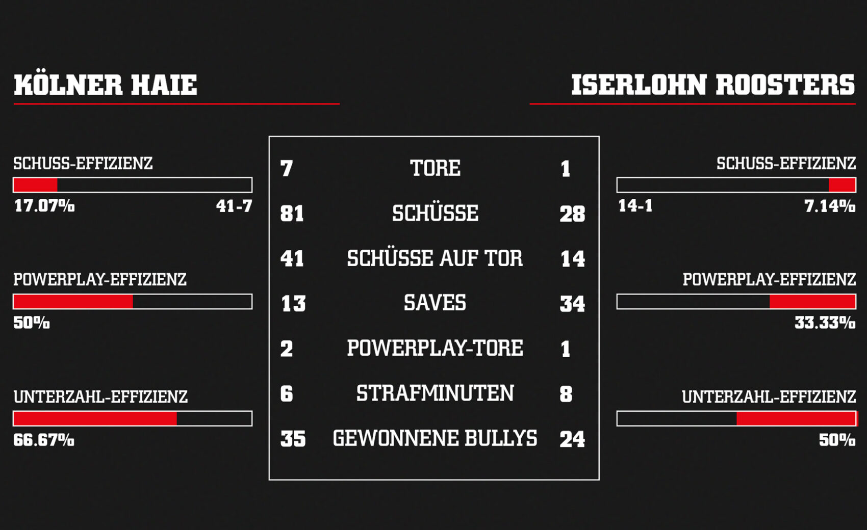 - Klare Sache: 81 zu 28 lautete die Schussstatistik nach 60 Minuten pro Haie.