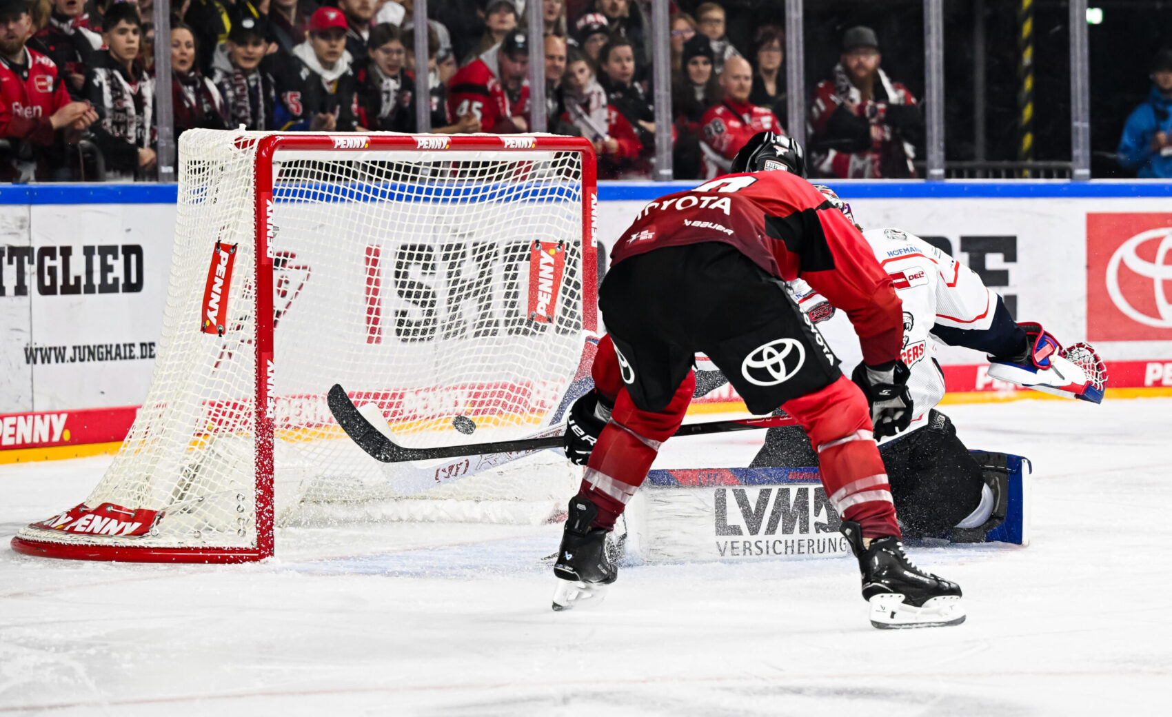 Unsere Mannschaft erwischte vor 17.919 Zuschauern einen guten Start in die Partie. Bereits früh erspielten wir uns ein optisches Übergewicht und brachten die ersten Abschlüsse auf den Kasten der Gäste. Nachdem unsere Mannschaft die ersten Chancen noch auslie, machte es Tanner Kero in der vierten Minute besser. Von Patrick Russell und Gregor MacLeod in Szene gesetzt, musste der US-Amerikaner im Slot nur noch die Kelle hinhalten und besorgte so die frühe KEC-Führung.