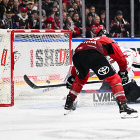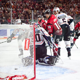 Der Schlussabschnitt ist dann recht schnell erzählt. Wir fanden wieder zu mehr Spielkontrolle und kamen – erneut in Überzahl – durch Juhani Tyrväinen, der einen Abpraller vom Pfosten abstaubte, zum siebten Treffer des Tages. Auf der Gegenseite traf Spezia elf Minuten vor dem Ende zum 7:4-Endstand. Mit dem Erfolg über die Ice Tigers feierte unsere Mannschaft den fünften Sieg in Serie und schob sich in der Tabelle vorbei an den Straubing Tigers auf Position drei.