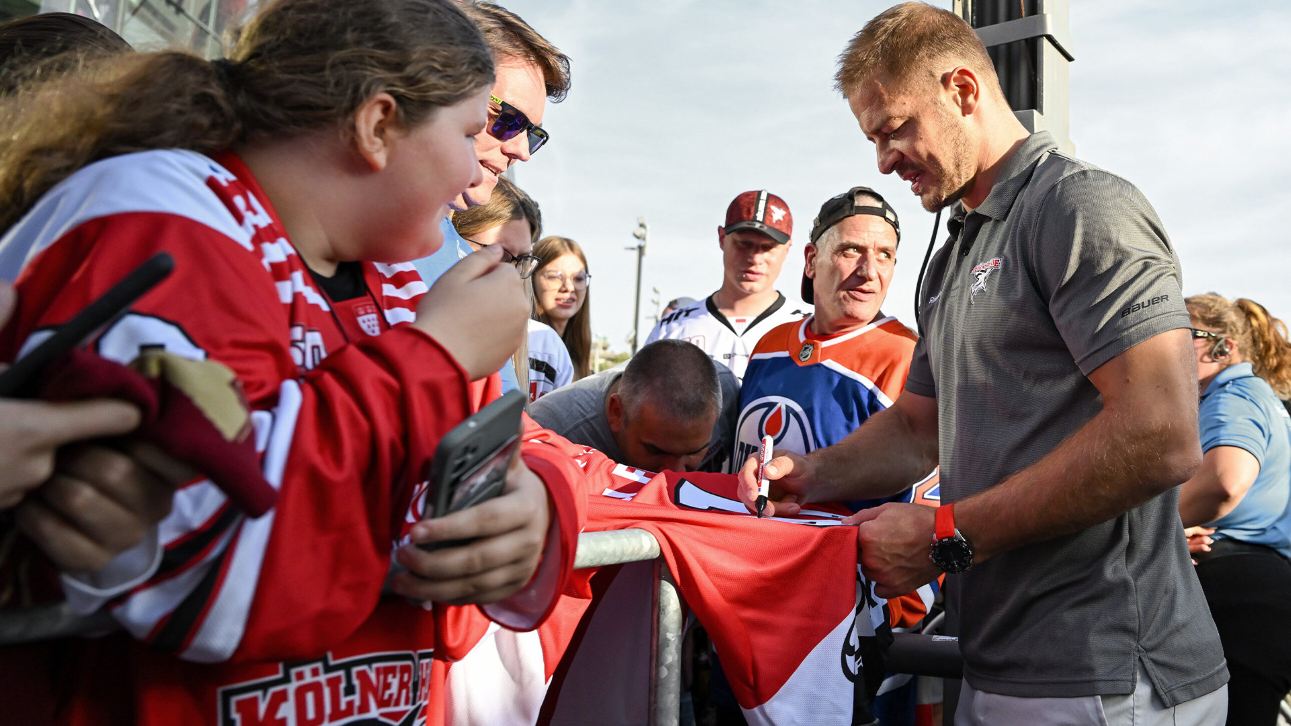 Wichtig! Um kurz nach 13:00 Uhr findet die Übergabe der getragenen Trikots an unsere Spieler auf dem Eis statt. Wie jedes Jahr werden diese traditionell von unseren Fanclubs übergeben. Des Weiteren wollen wir den Samstag nutzen, um David McIntyre, der kürzlich seine Karriere beendet hat, würdevoll zu verabschieden. Die Verabschiedung erfolgt direkt im Anschluss an die Trikotübergabe. Wir würden uns daher freuen, wenn möglichst viele von euch schon ab 13:00 Uhr da sind.