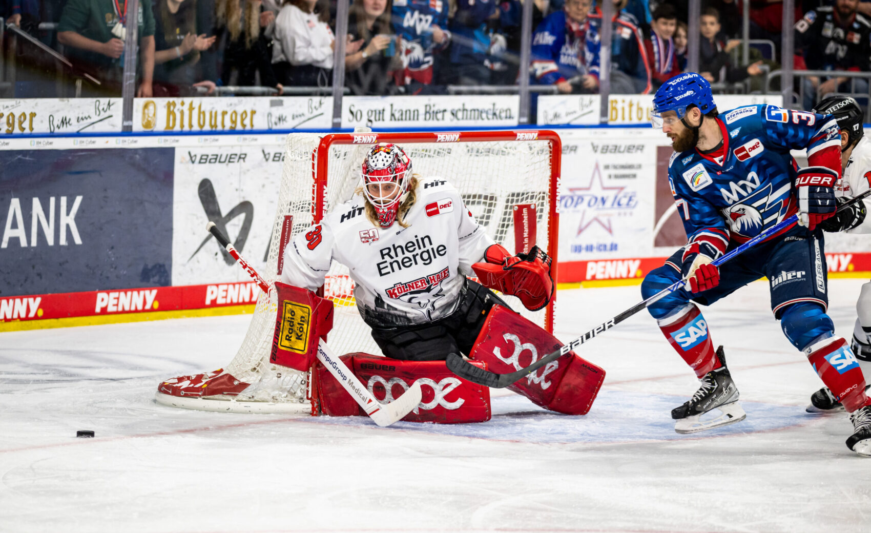 Ab dem zweiten Drittel kamen die Hausherren besser in die Partie, auch wenn die erste gute Gelegenheit erneut der KEC hatte. Landon Ferraro scheiterte aus halblinker Position an Brückmann. In Folge stand dann dessen Gegenüber Mirko Pantkowski mehr im Fokus. Der Kölner Schlussmann behielt bei mehreren guten Adler-Versuchen den Überblick und entschärfte die Abschlüsse von MacInnis, Wolf und Co. In recht wilden letzten Minuten des zweiten Abschnitts hatten die Haie offensiv viele gute Ansätze, spielten diese aber nicht konsequent zu Ende, weshalb keine weiteren Treffer fielen.