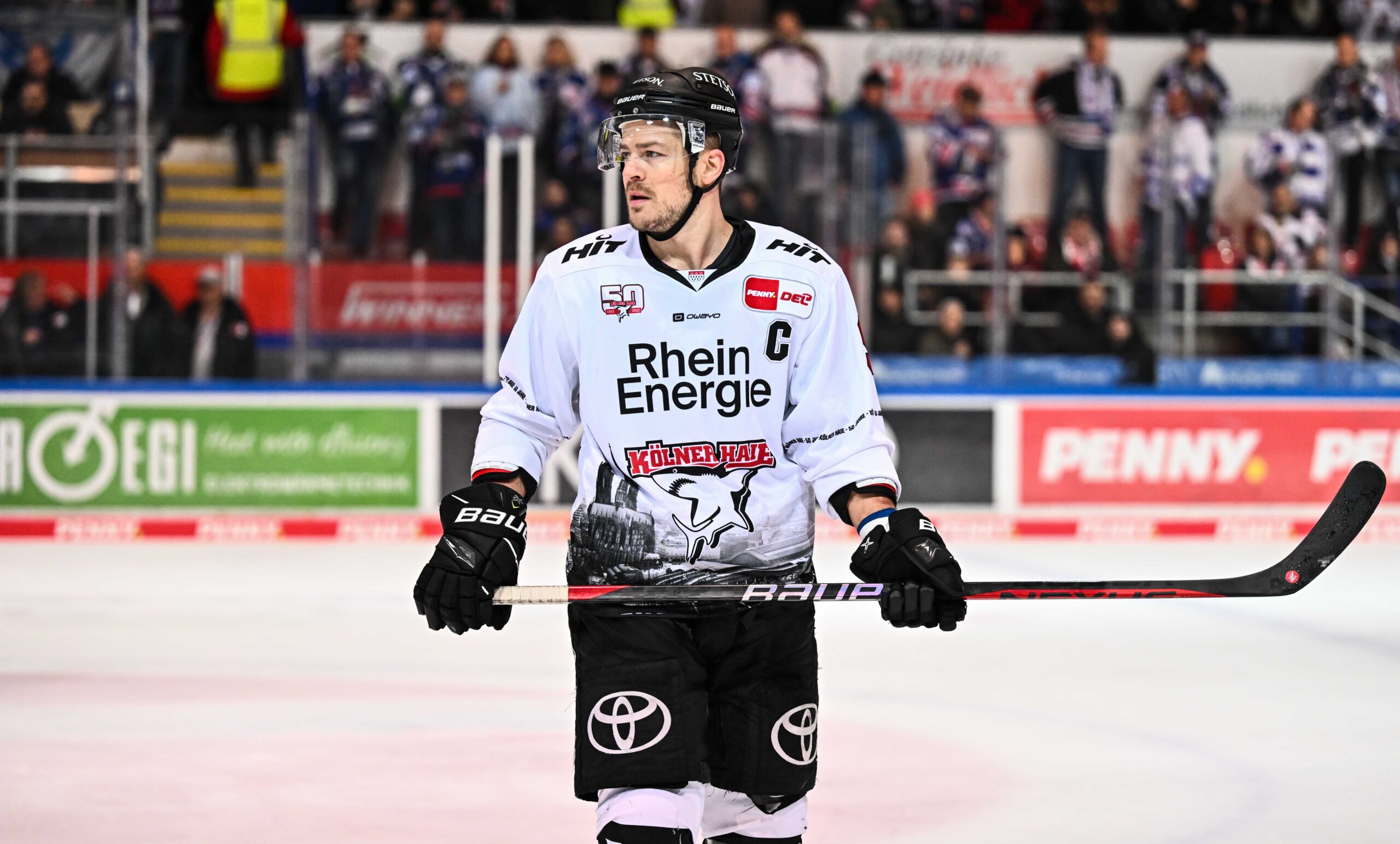 Im Auktions-Satz befindet sich auch ein fast schon historisches Trikot. Denn mit dabei ist das Trikot, welches Haie-Kapitän Moritz Müller bei seinem 1.000 PENNY DEL-Spiel am 24. Februar in Iserlohn trug.