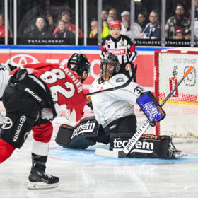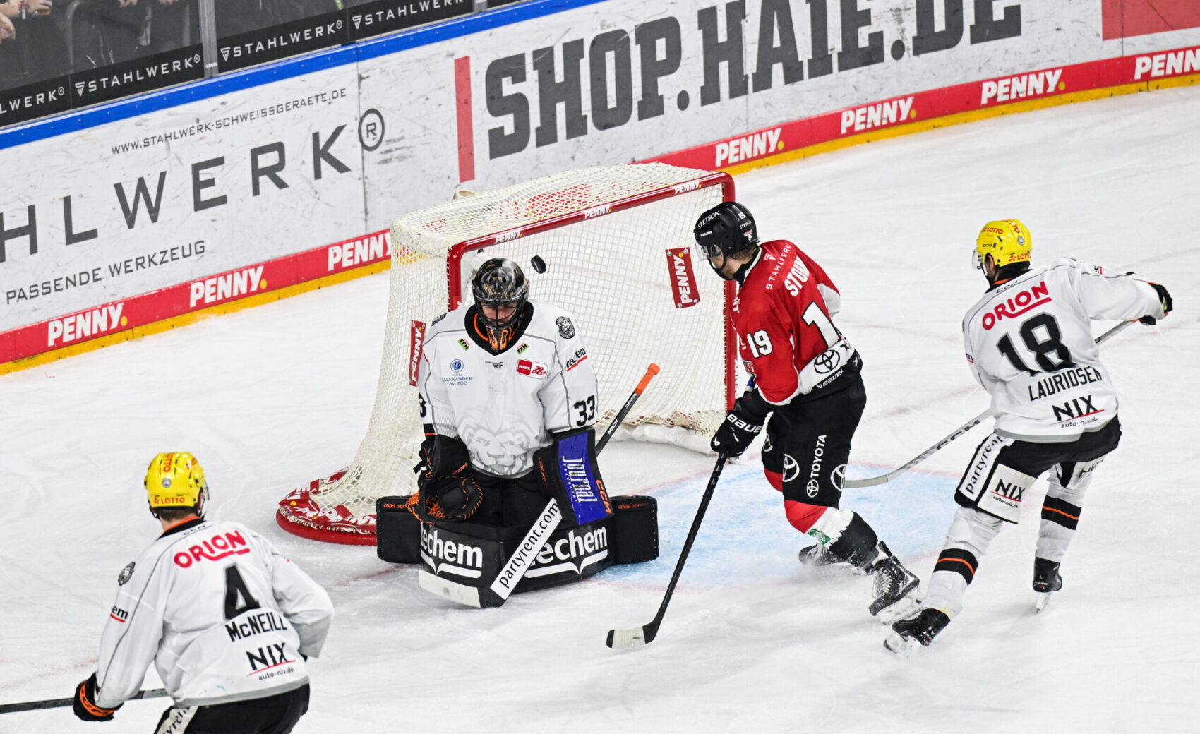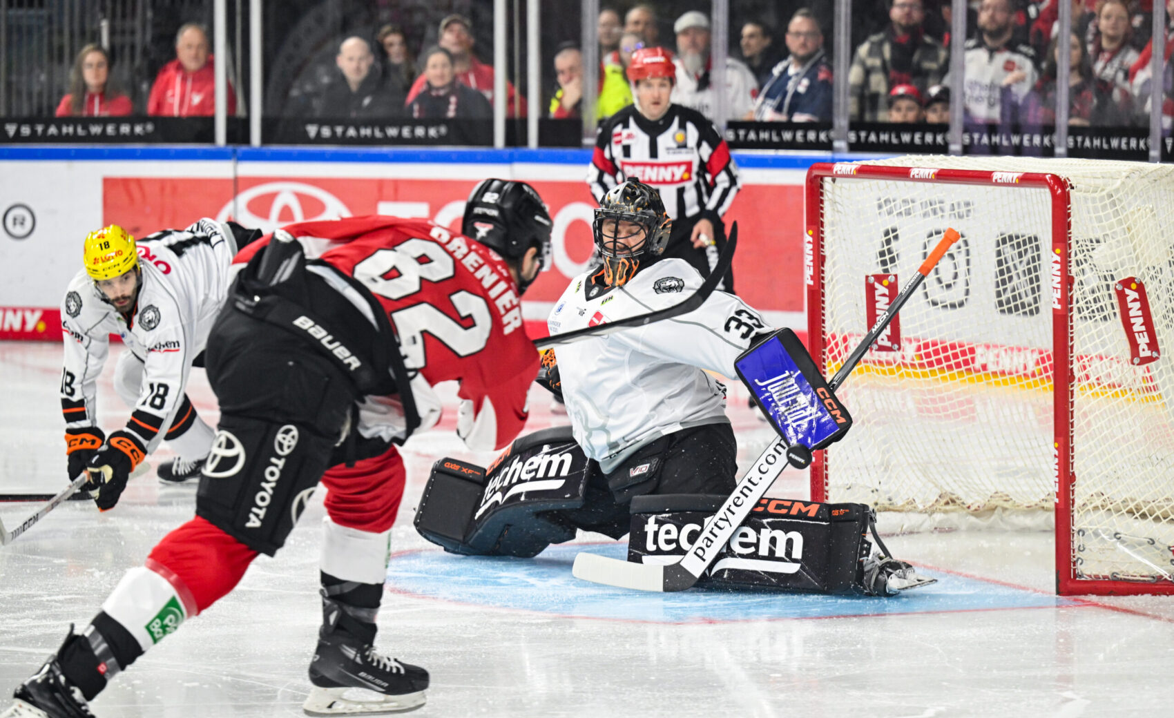 Und zu Beginn dieses zweiten Drittels rieben sich einige Zuschauer eventuell verwundert die Augen. Denn schon wieder war Alexandre Grenier nach nur wenigen Sekunden frei durch und zielte erneut etwas zu hoch, sodass die Scheibe nur auf dem Tor landete. Wiederum nur wenige Augenblicke darauf stand uns der Pfosten im Weg – dieses Mal probierte es Maxi Kammerer. Nach diesem Déjà-vu und einem weiteren Pfostentreffer von Nick Bailen (32.) sollte der Bann dann endlich gebrochen werden. In der 34. Minute traf Louis-Marc Aubry aus spitzem Winkel zum Anschlusstreffer, ehe es mit dem Spielstand von 1:2 in die zweite Pause ging.