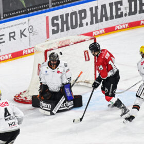In weiteren Verlauf des Drittels kamen die Gäste aus der Mainmetropole besser in die Partie. Und zeigten dann mit einem Doppelschlag ihre Kaltschnäuzigkeit. Zunächst nutze Nehring nach nur sechs Sekunden eine Überzahlsituation aus – nur 42 Sekunden später traf Napravnik aus zentraler Position in den Winkel (17.). Mit dem Spielstand von 0:2 aus Haie-Sicht ging es in die erste Pause.