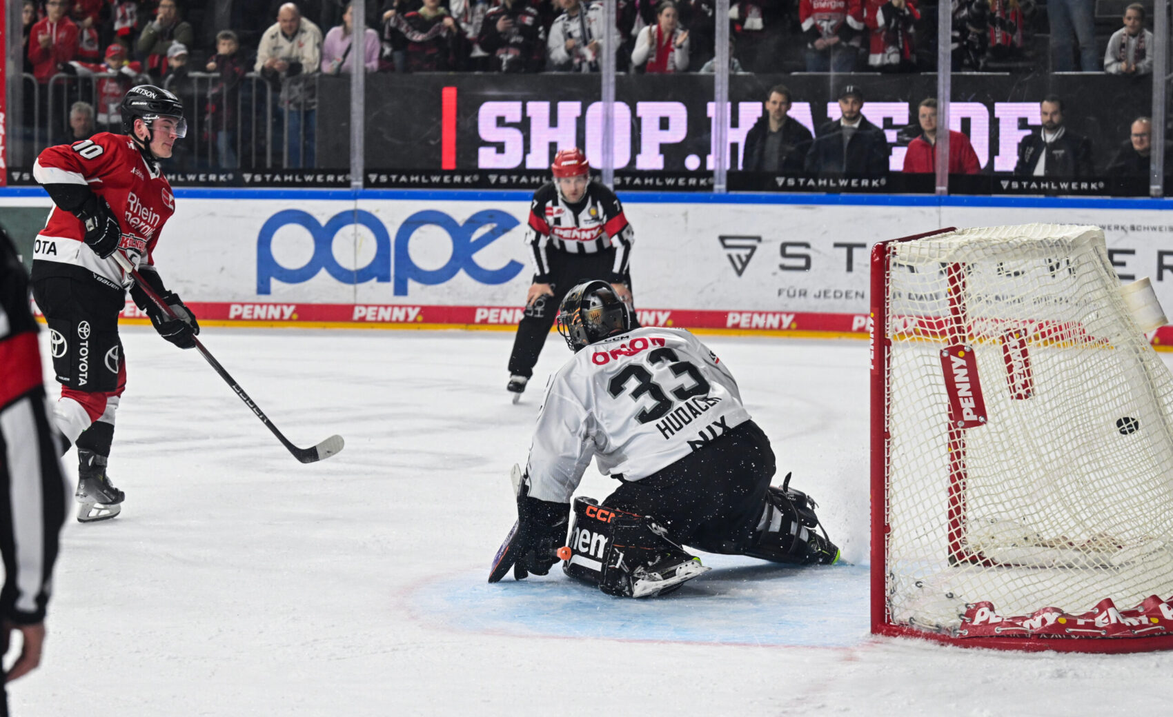 28 Sekunden waren am Freitagabend in der LANXESS arena gespielt, da hatte ein Groteil der 18.600 Zuschauer im ausverkauften Rund den ersten Torschrei des Spiels schon auf den Lippen. Gregor MacLeod setzte mit einem feinen Zuspiel den am langen Pfosten wartenden Alexandre Grenier in Szene. Doch der Franko-Kanadier schob die Scheibe etwas zu hoch und somit über den Kasten. Nur zehn Sekunden später scheiterte Louis-Marc Aubry mit seinem Abschluss am Innenpfosten. Unserer Mannschaft war vom ersten Bully anzumerken, dass sie eine Reaktion auf die jüngste Heimniederlage gegen Iserlohn geben wollte. Und dies tat sie auch.