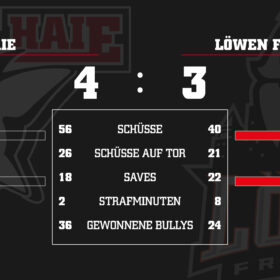 Die torlose Zeit sollte nach 27 Minuten dann ein Ende haben. Justin Schütz zog aus spitzem Winkel ab, wo der Puck von der Maske Cannatas in die Maschen flog – die Führung für die Haie. Doch diese sollte nicht lange bestehen. Mit einem Dreifachschlag in etwas weniger als zweieinhalb Minuten drehten die Gäste aus Südhessen die Partie. Alanov per Abfälscher, Burns im Nachsetzen in Überzahl und erneut Alanov stellten das Ergebnis auf 3:1 aus Sicht der Löwen (33.). Wir brauchten etwas, um diesen Rückstand zu verdauen und kamen im Mittelabschnitt nicht mehr zu Torchancen. Doch das Schlussdrittel sollte der Partie seinen Stempel aufsetzen.