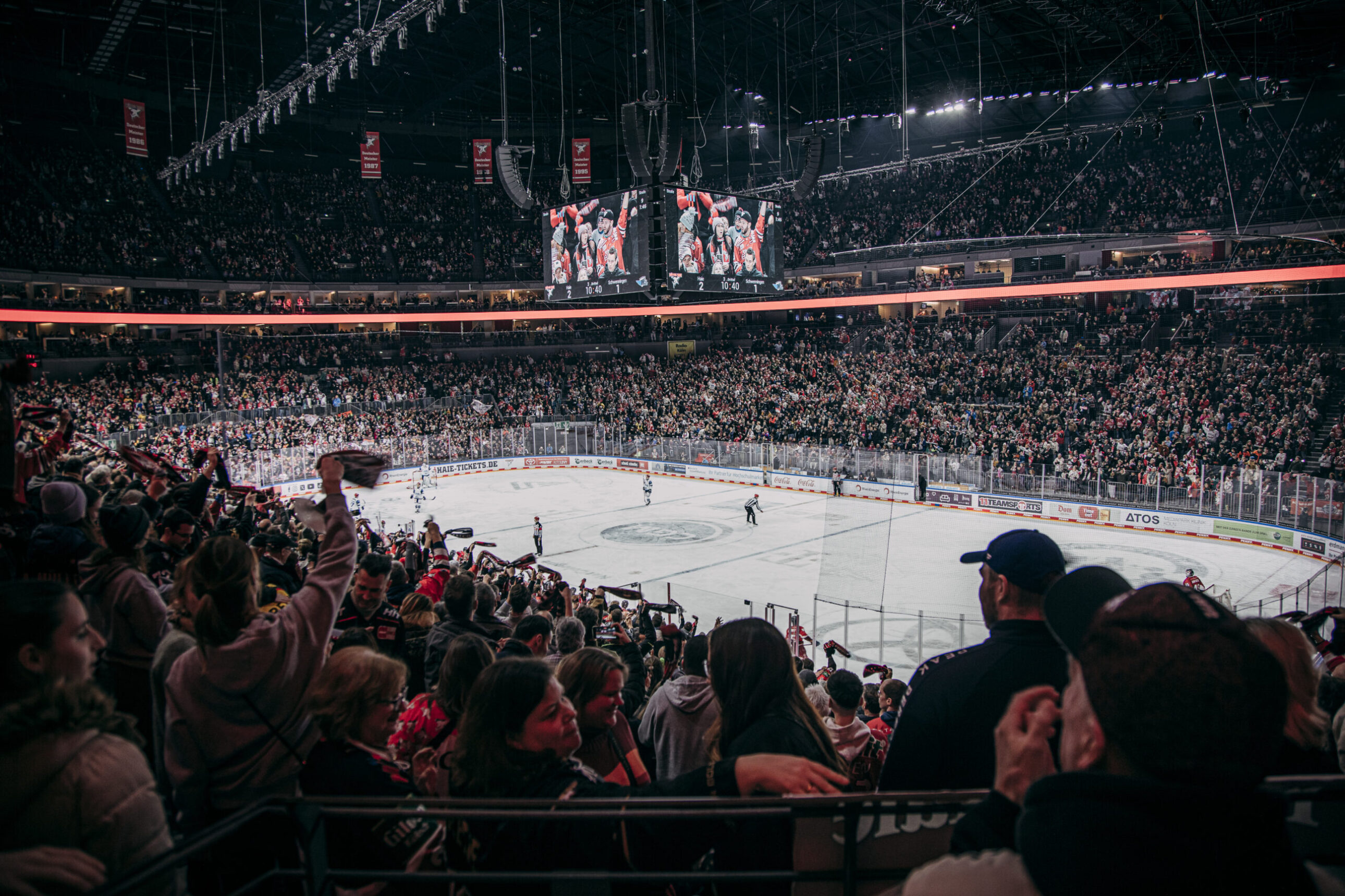 Wir empfehlen eine frühzeitige Anreise – am besten natürlich mit dem ÖPNV. Bei allen Haie-Heimspielen gehen unsere Dauer- und Tageskarten mit einem Fahrausweis zur Nutzung von Bus und Bahn (2. Klasse) im VRS-Netz einher. Dauerkarten und „Hardcover“-Tickets (die man beispielsweise im HAIEstore, an den Tageskassen oder per Post erhält) gelten automatisch als Fahrkarte. Bei digitalen oder Print@Home-Tickets muss der Fahrausweis unter Eingabe der Ticketnummer hier erstellt werden. Die Tore der LANXESS arena öffnen am Freitagabend um 18:00 Uhr. Für Dauerkartenfans wie gewohnt fünf Minuten eher.