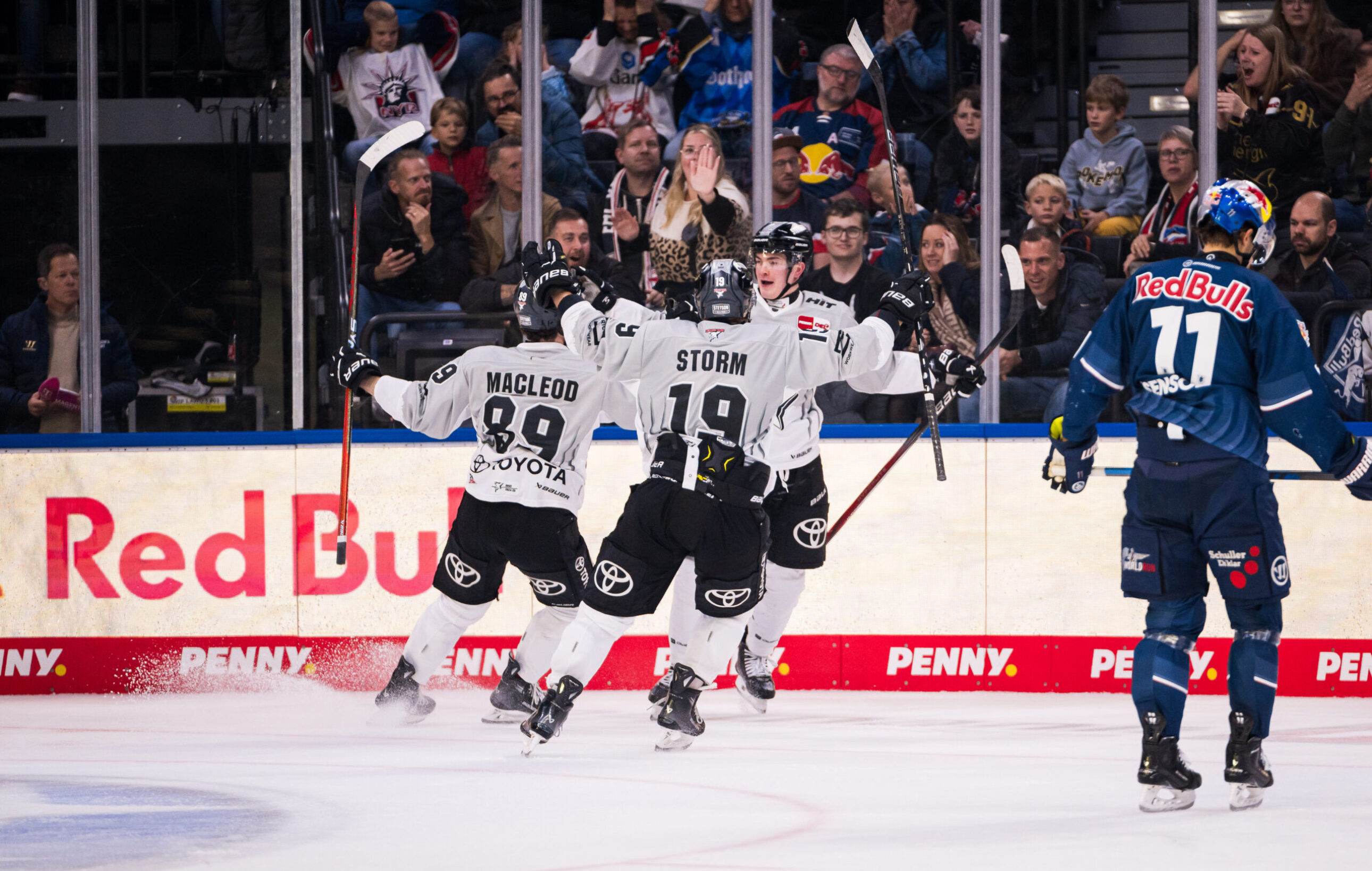 Im zweiten Drittel sollte dann aber auch schnell der erste Treffer für uns fallen – und dies in kurioser Art und Weise. Nachdem Parker Tuomie seinen Abschluss am Kasten vorbei setzte, sprang die Scheibe von der Plexiglasscheibe über das Tor zurück, wo Matthias Niederberger im Münchner Kasten sich den Puck selbst ins eigene Tor bugsierte (22.). 15 Minuten später hätte Tuomie beinahe den Doppelpack schnüren können. Unser Stürmer mit der Rückennummer 62 tauchte frei vor Niederberger auf, setzte die Scheibe aber nur an den Innenpfosten. Zuvor hatten auch die Red Bulls „Alu-Pech“, als ein Schuss von der blauen Linie am linken Pfosten landete (28.).