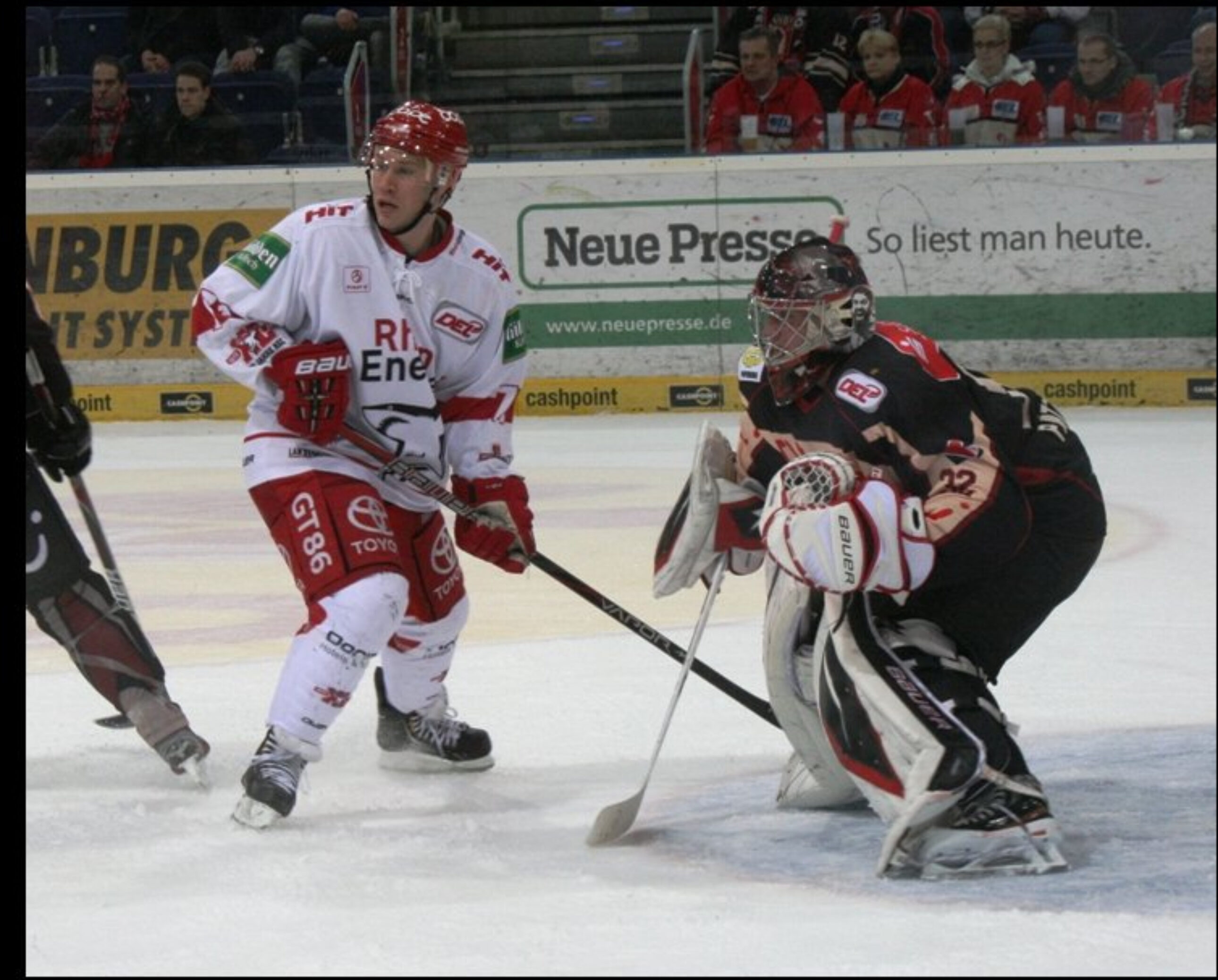 Nach dem spektakulären Gipfeltreffen vom Sonntag in ausverkaufter Mannheimer Halle bot das Duell der Haie bei den Scorpions zunächst ein ziemliches Kontrastprogramm. Die Mannschaften tasteten sich nur langsam in die Partie. In den ersten 20 Minuten konnte man die Anzahl an einigermaen ordentlichen Torchancen auf beiden Seiten an einer Hand abzählen. Die Teams zeigten ehrliche Arbeit, taktische Disziplin, spielerische Glanzpunkte blieben aber im ersten Abschnitt aus.